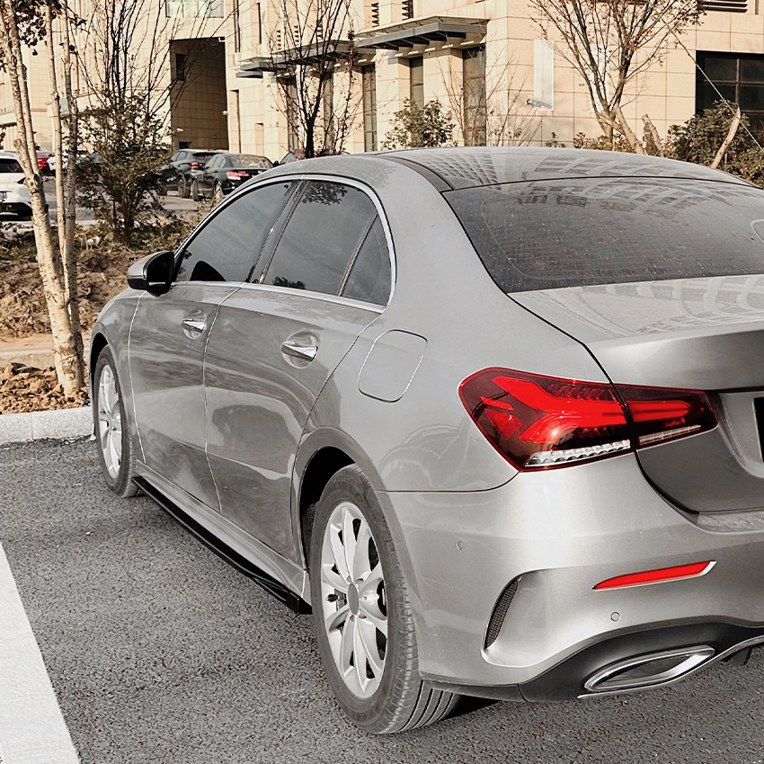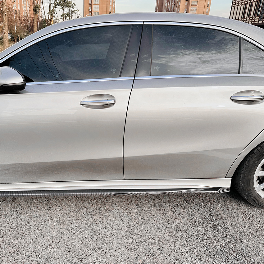 - Enhanced Aesthetic Appeal: Available in sleek Piano Black and dynamic Carbon Fiber texture, these side skirt extensions provide a sporty, aggressive look, dramatically enhancing your A-Class’s overall exterior styling.