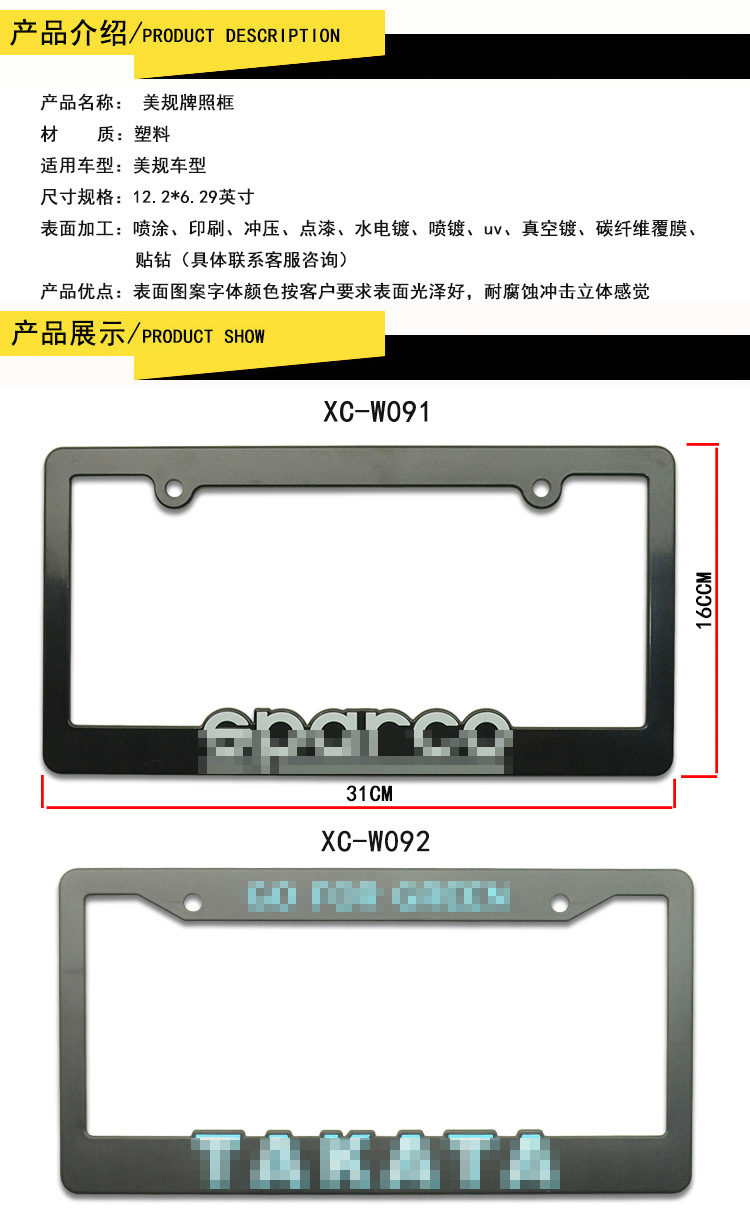 ABS Plastic License Plate Frame for North American Standard Car Plates