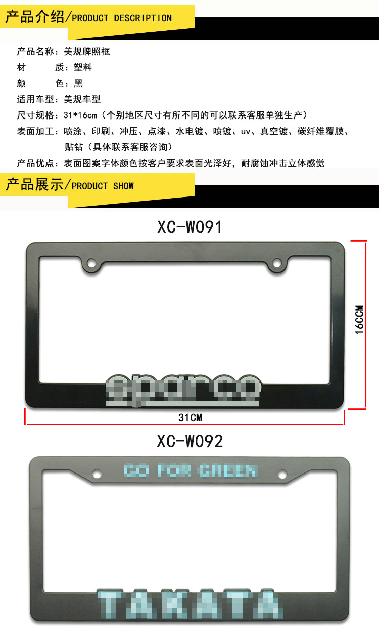 ABS Plastic License Plate Frame for US Vehicle Standard Size (31*16cm)