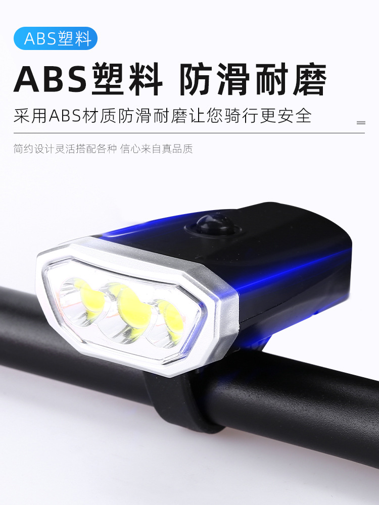 ABS Plastic Waterproof Bike Headlight Ultra Bright USB Rechargeable Bicycle Front Light for Night Riding