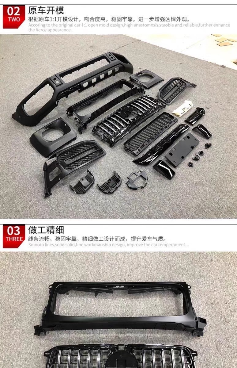 - Complete Upgrade Package: Includes a full body kit with front bumper, matching grille, and headlight frames, delivering a comprehensive exterior enhancement for your G-Class.