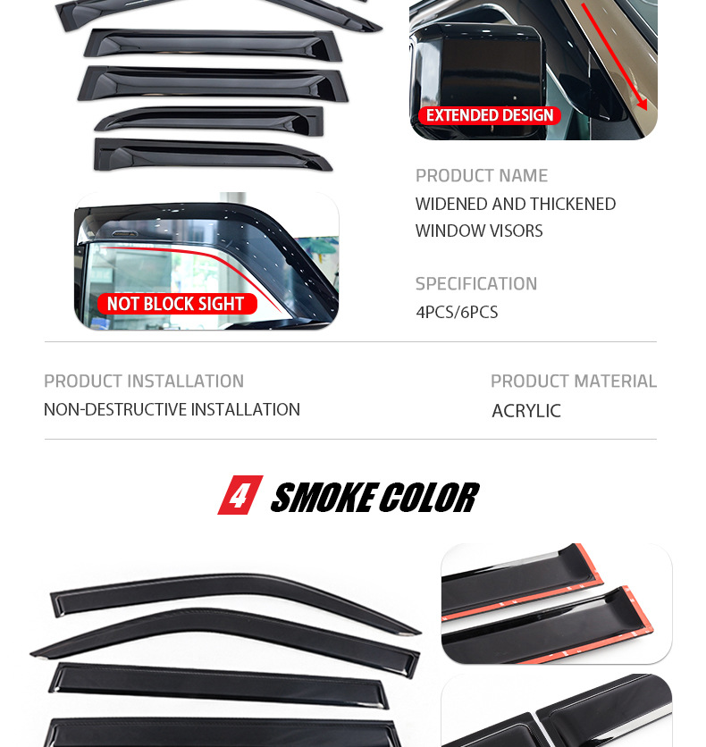 - Complete Package: Includes a full set of window visors (6 pieces as seen in the image) for all side windows. Please verify fitment details before purchasing.