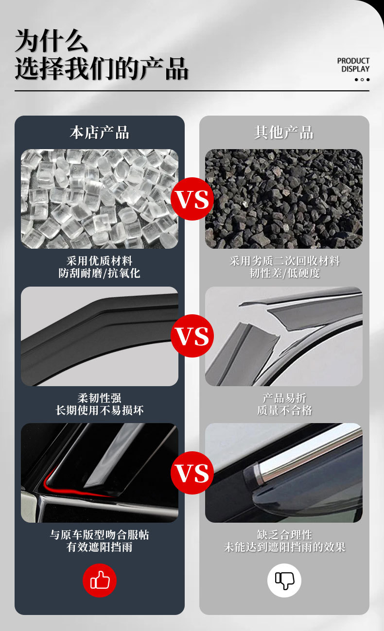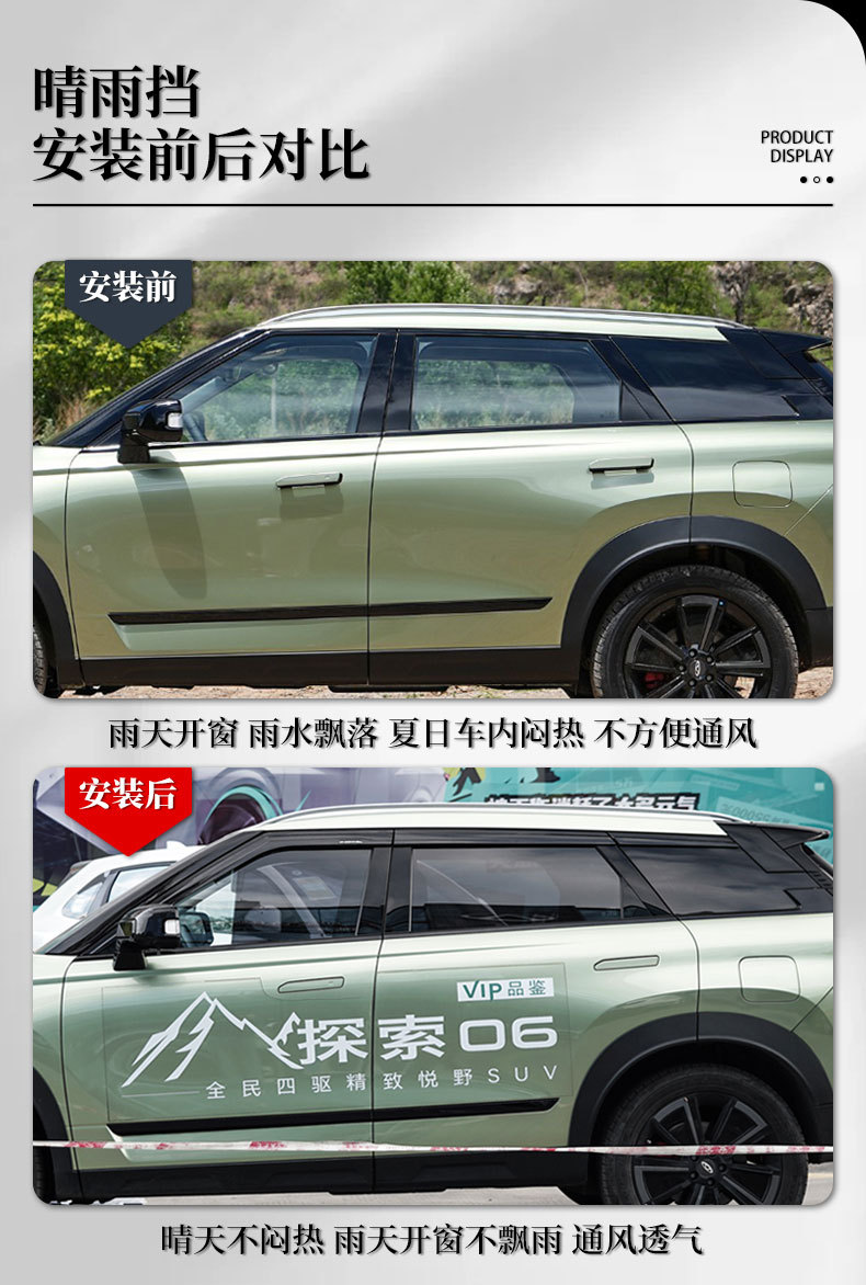 - Performance-Driven Design: Allows for fresh air circulation while preventing rain from entering the vehicle. Reduces wind noise and enhances driving comfort during inclement weather.