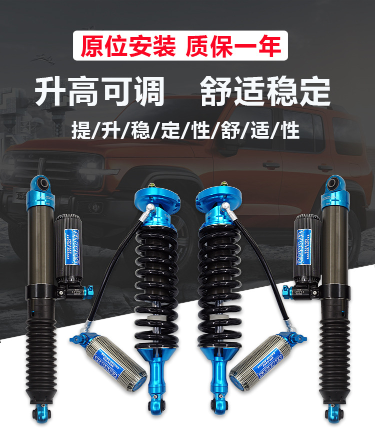 - Performance-Driven Design: Features adjustable coilovers, separate reservoirs, and heavy-duty springs to enhance off-road performance and ride comfort, as seen in the image.