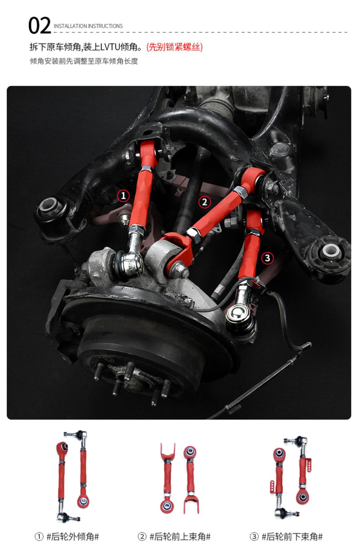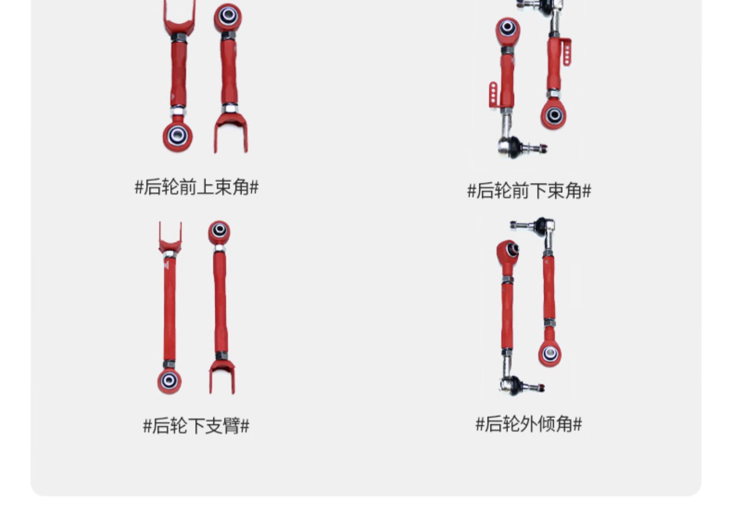 - Enhanced Suspension Control: Features an adjustable design, allowing precise tuning of camber and toe for improved handling, better tire wear, and optimized vehicle stability.
