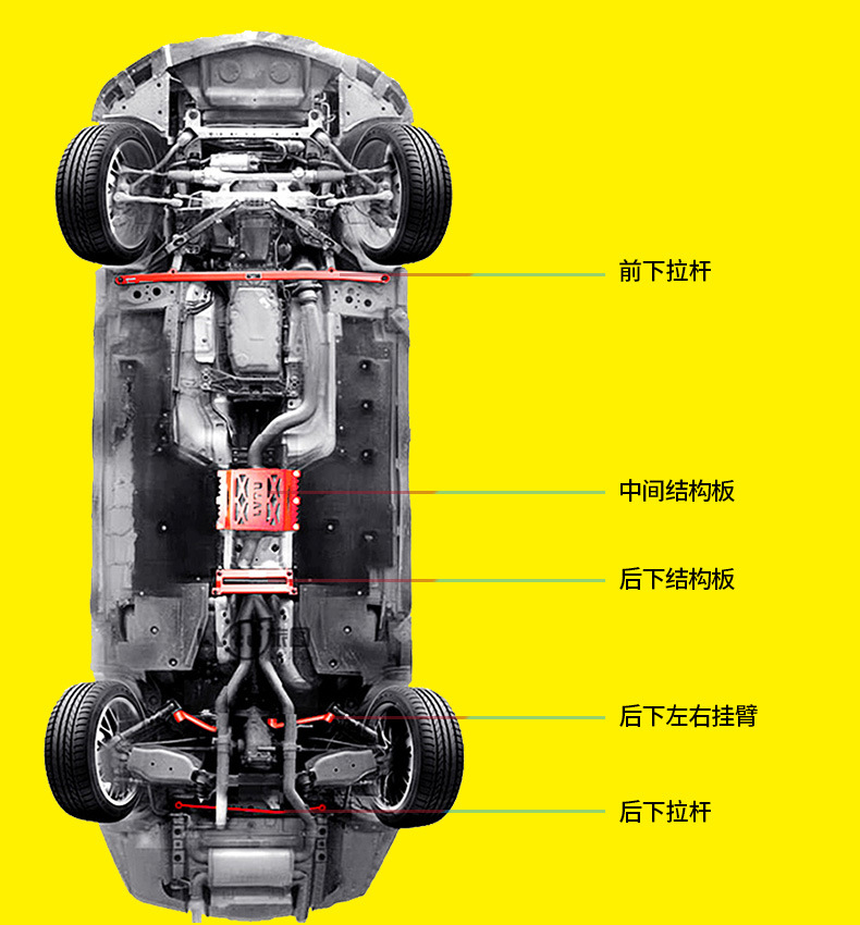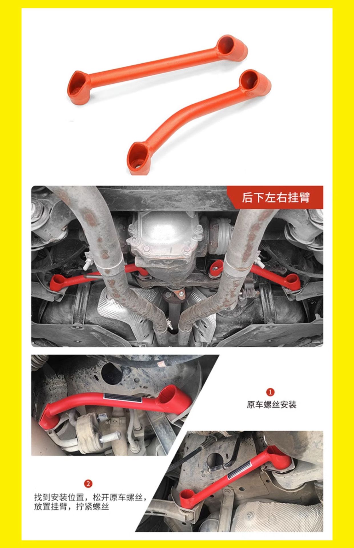 - Comprehensive Suspension Upgrade: Includes adjustable anti-sway bar, front lower tension rods, mid-structure plate, rear lower structure plate, rear lower trailing arms, rear upper slanted arms, and front sway bar links for a full performance suspension enhancement.