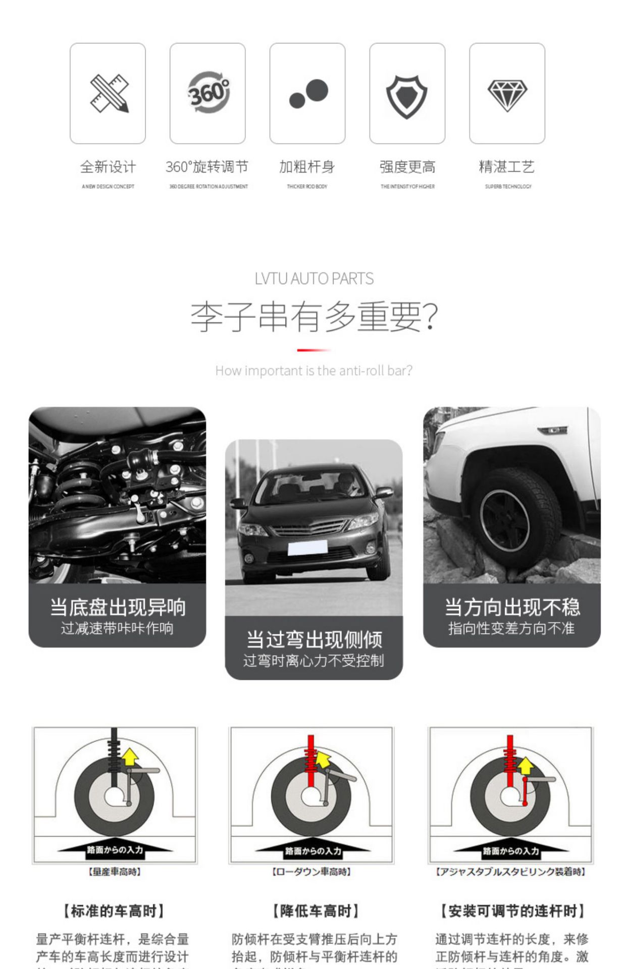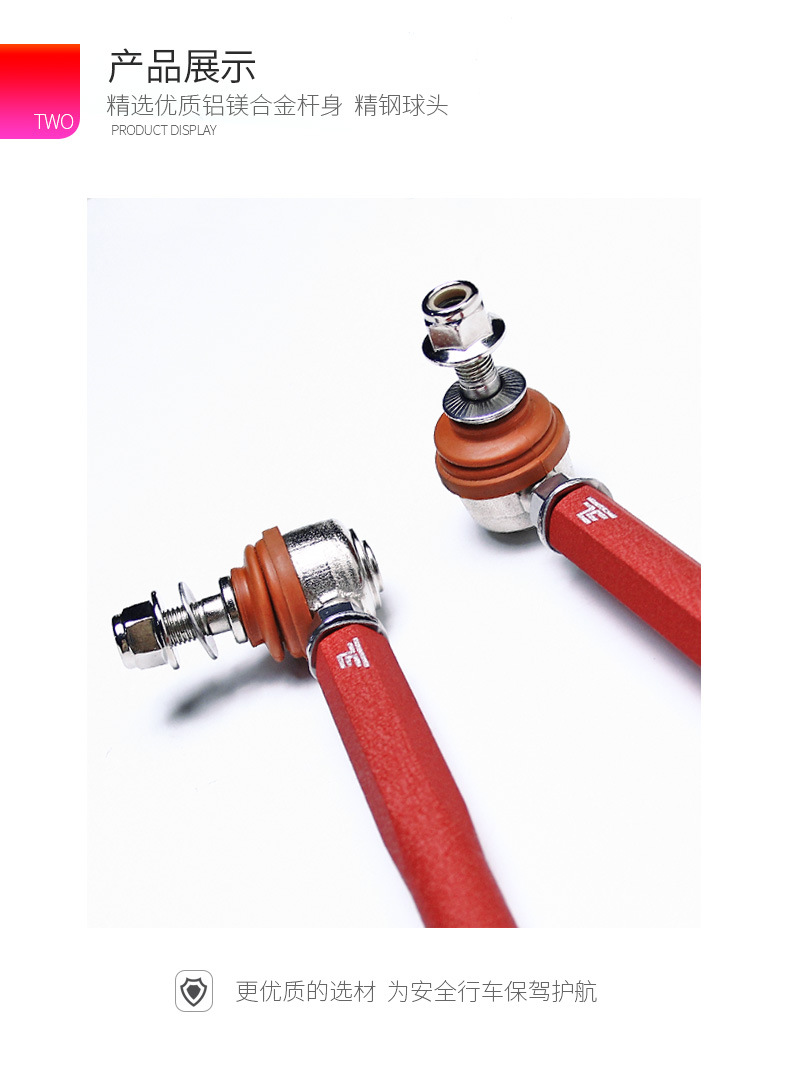 - Premium Adjustable Design: Features a 360° adjustable ball joint angle and adjustable rod swing, allowing for precise customization and optimal performance to enhance handling and stability.