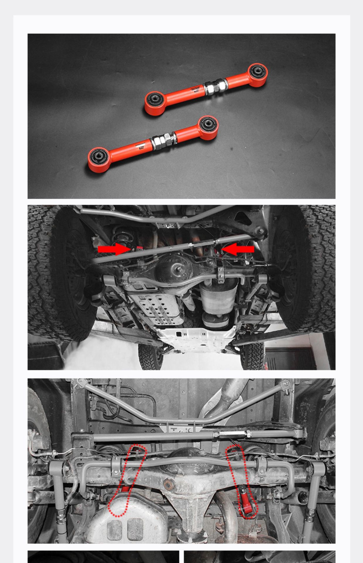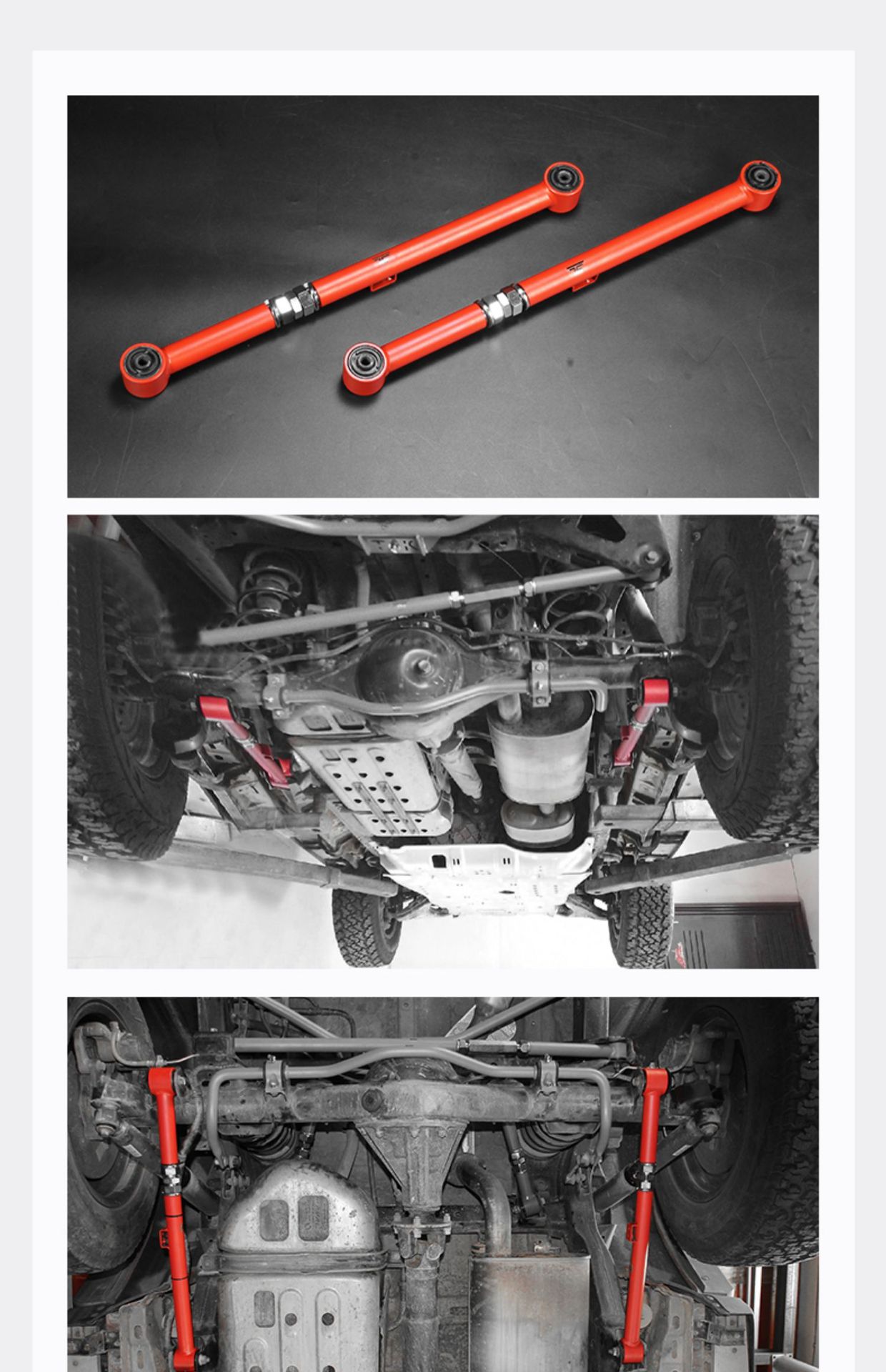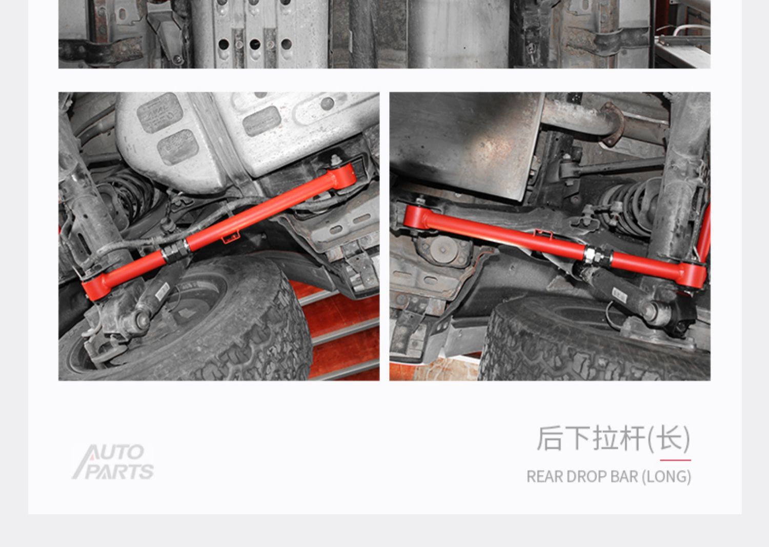 - Comprehensive Chassis Upgrade: This package includes various reinforced components such as front and rear lower control arms, front and rear end links, and a rear subframe brace (rear lower cross brace), providing a full suspension enhancement.