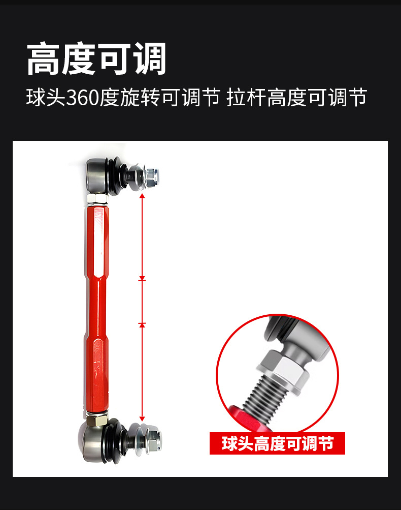 - Enhanced Stability: Adjustable anti-roll sway bar link significantly improves driving stability and reduces body roll during turns.