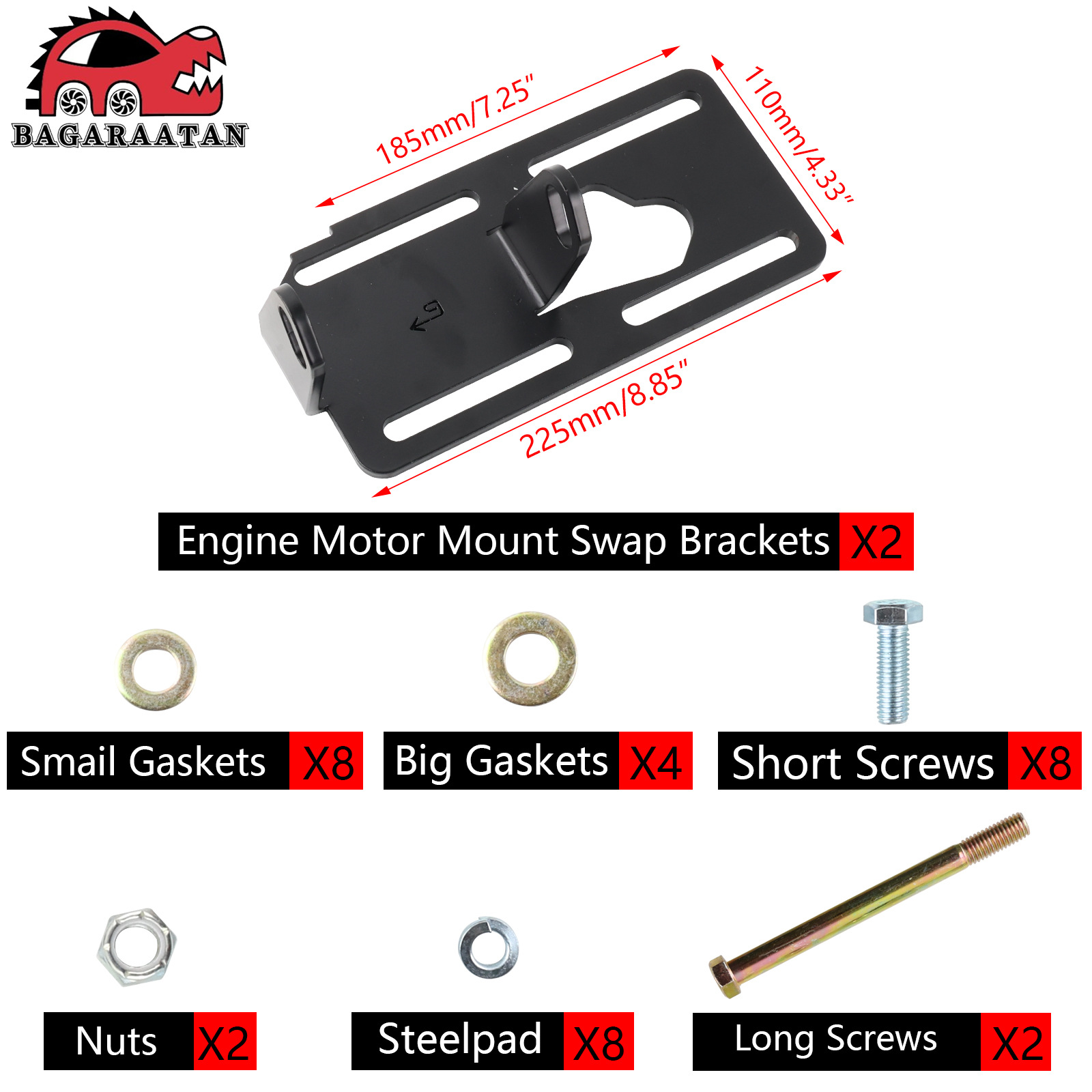 • EFFORTLESS INSTALLATION: Engineered for a straightforward installation process, though professional installation is recommended. These adjustable mounts ensure easy alignment and secure fitment, simplifying your engine swap project.
