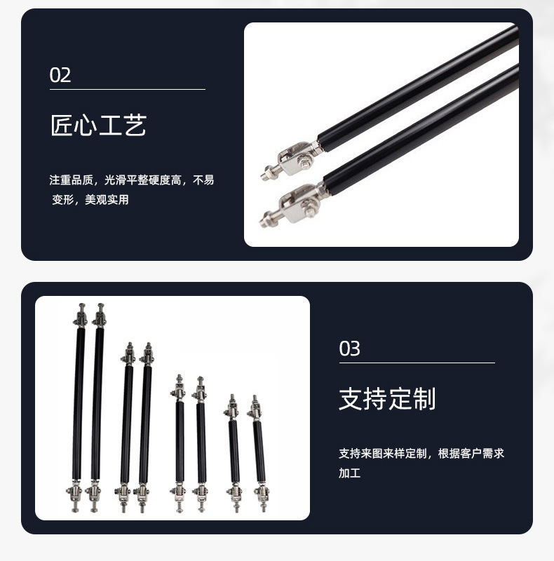 • Aggressive Aesthetics & Personalized Look: Featuring a smooth, matte black finish and a race-inspired design, these adjustable rods instantly elevate your vehicle’s front end, adding an aggressive, track-ready aesthetic and setting your car apart from the crowd.