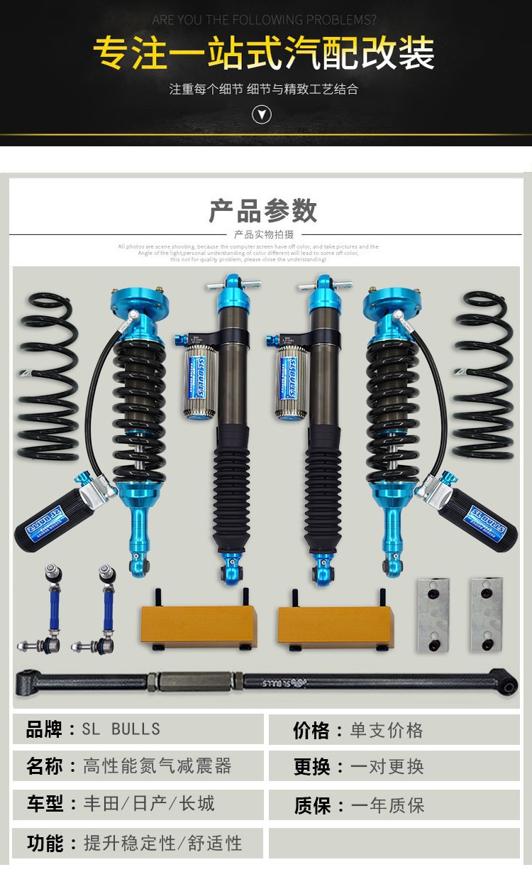 Adjustable Nitrogen Shock Absorber Suspension Lift Kit for Great Wall Poer Tank 300 2-inch Lift