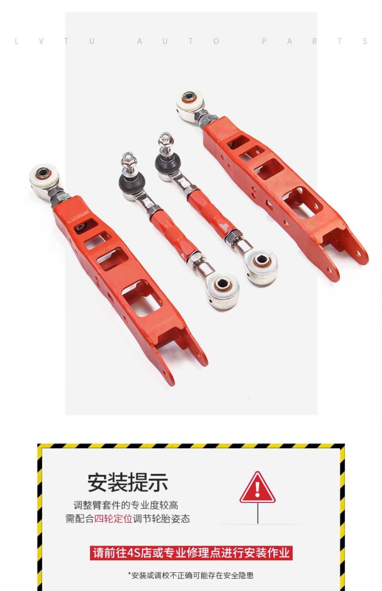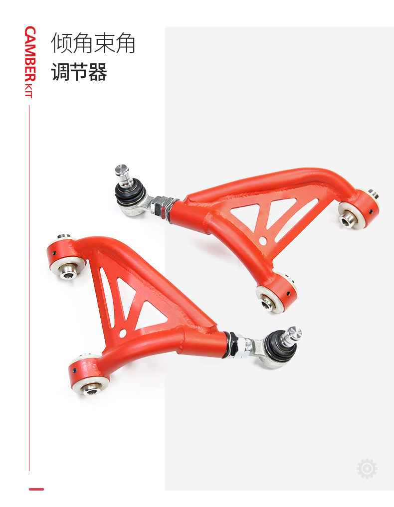 - Enhanced Performance & Alignment: Featuring adjustable inner camber from -3° to +3° and adjustable toe, allowing for precise suspension tuning, improved handling, and reduced tire wear for optimal driving dynamics on the street or track.