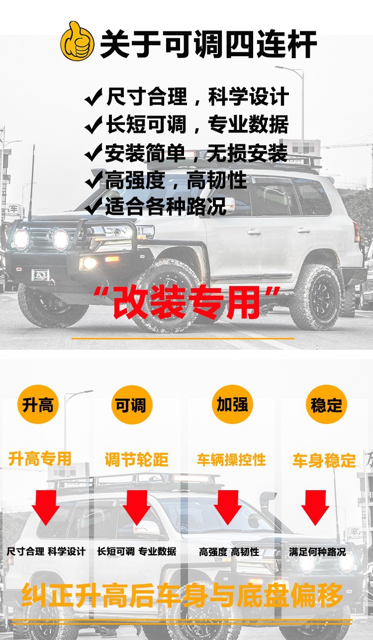 - Performance-Driven Design: Features fully adjustable length, allowing for precise customization of suspension geometry and improved handling performance, restoring original ride comfort.