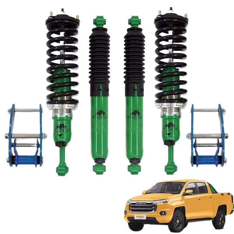 - Direct Fitment: A perfect replacement for JMC Yuhu Series Pickup models 5, 7, and 9. This comprehensive kit includes front coilover assemblies, rear shock absorbers, and rear lift shackles, ensuring a precise match for your vehicle.