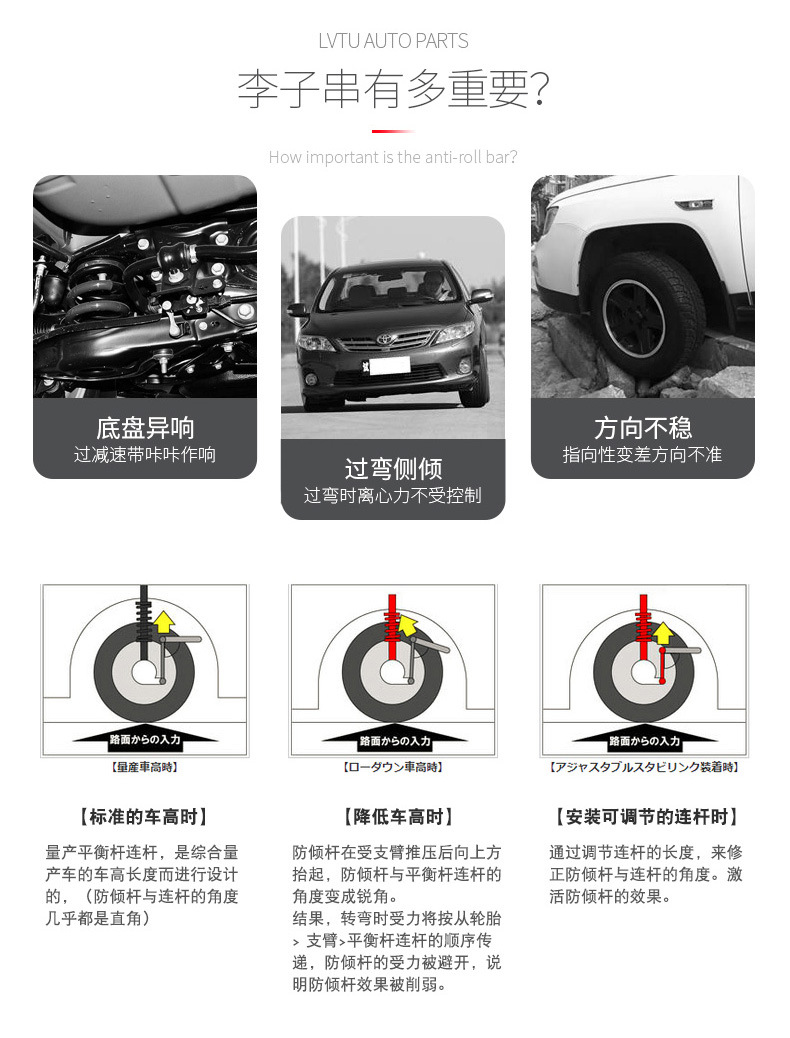 - Optimized Performance & Handling: Engineered to provide precise suspension adjustments, significantly improving vehicle handling, reducing body roll, and enhancing overall driving comfort and safety, especially during cornering.