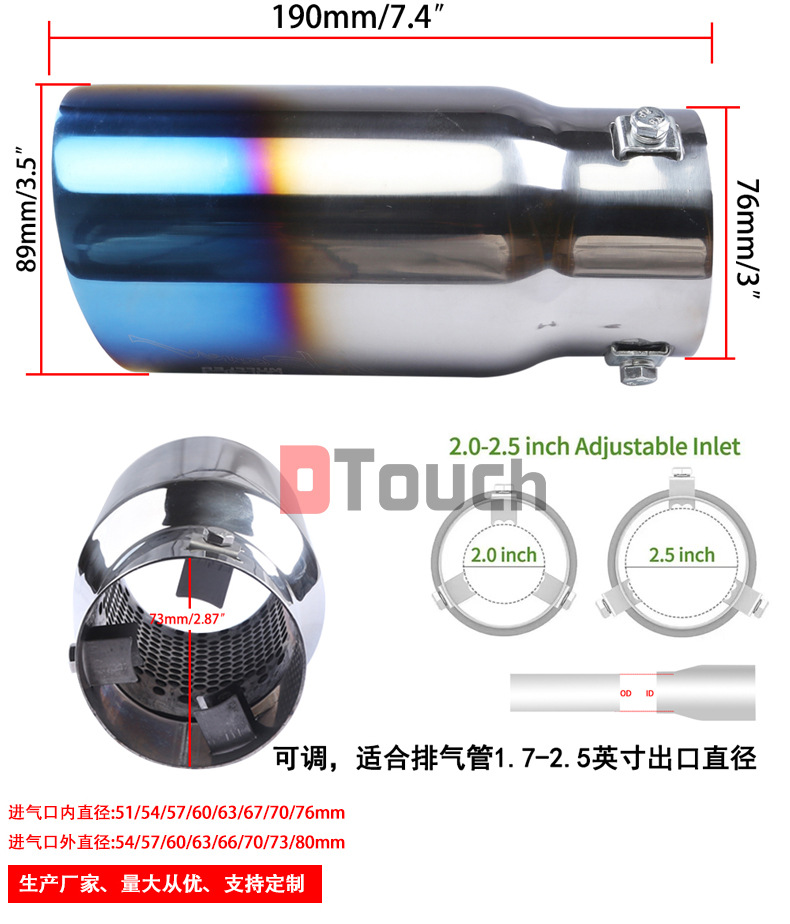 • Premium Stainless Steel Construction: Crafted from high-quality stainless steel, this exhaust tip provides exceptional durability, corrosion resistance, and heat tolerance, ensuring long-lasting performance and a brilliant burnt blue finish that resists fading.