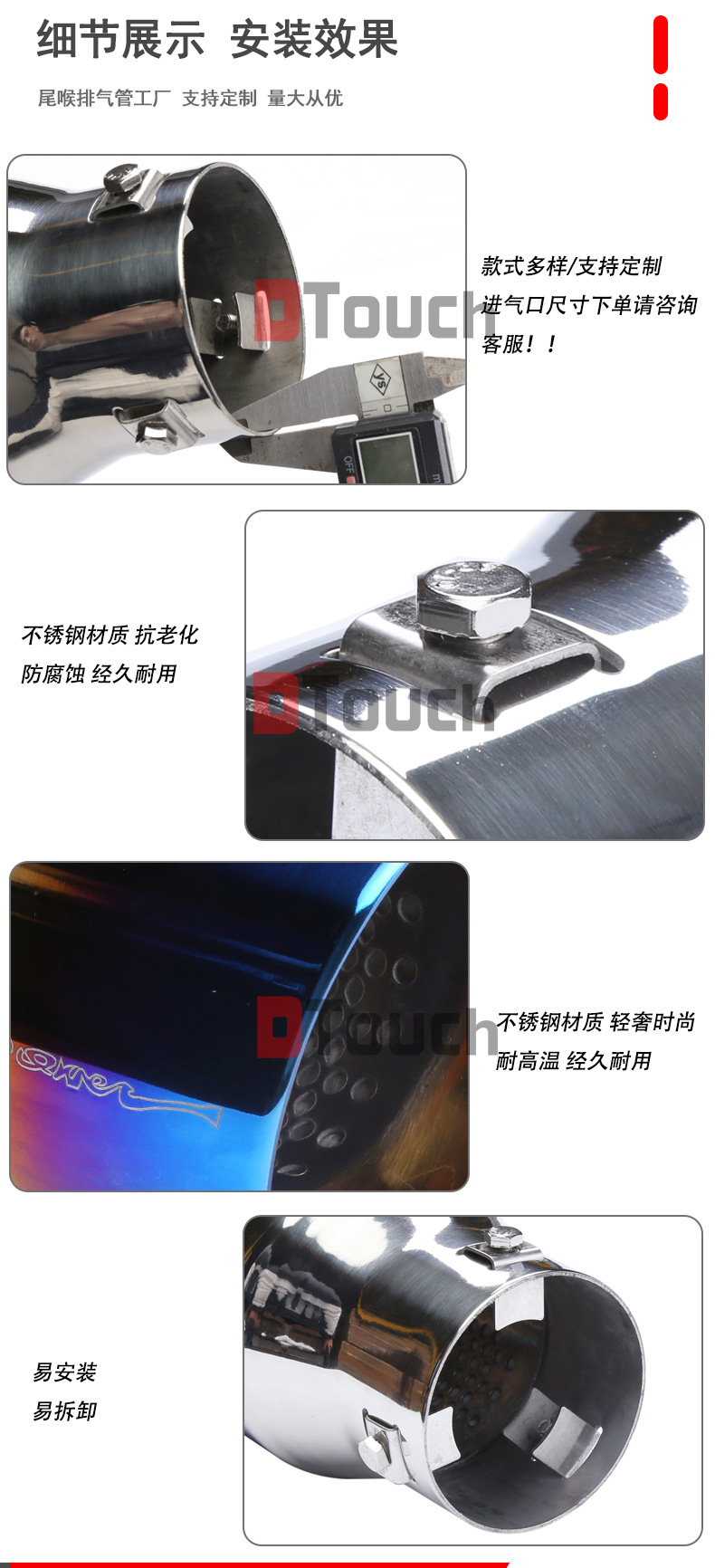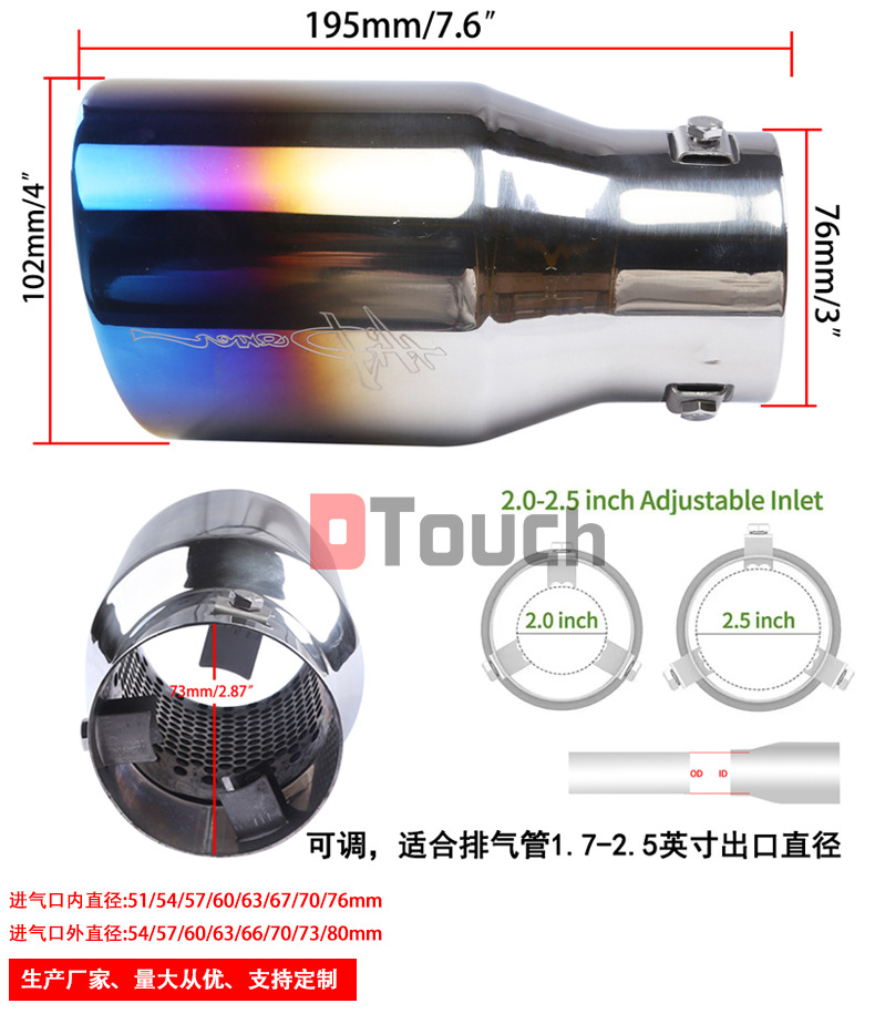 • Universal Fit & Adjustable Design: This 76-102mm exhaust tip is designed for universal compatibility, easily fitting most car models with an adjustable inlet and outlet for a perfect, secure fit.