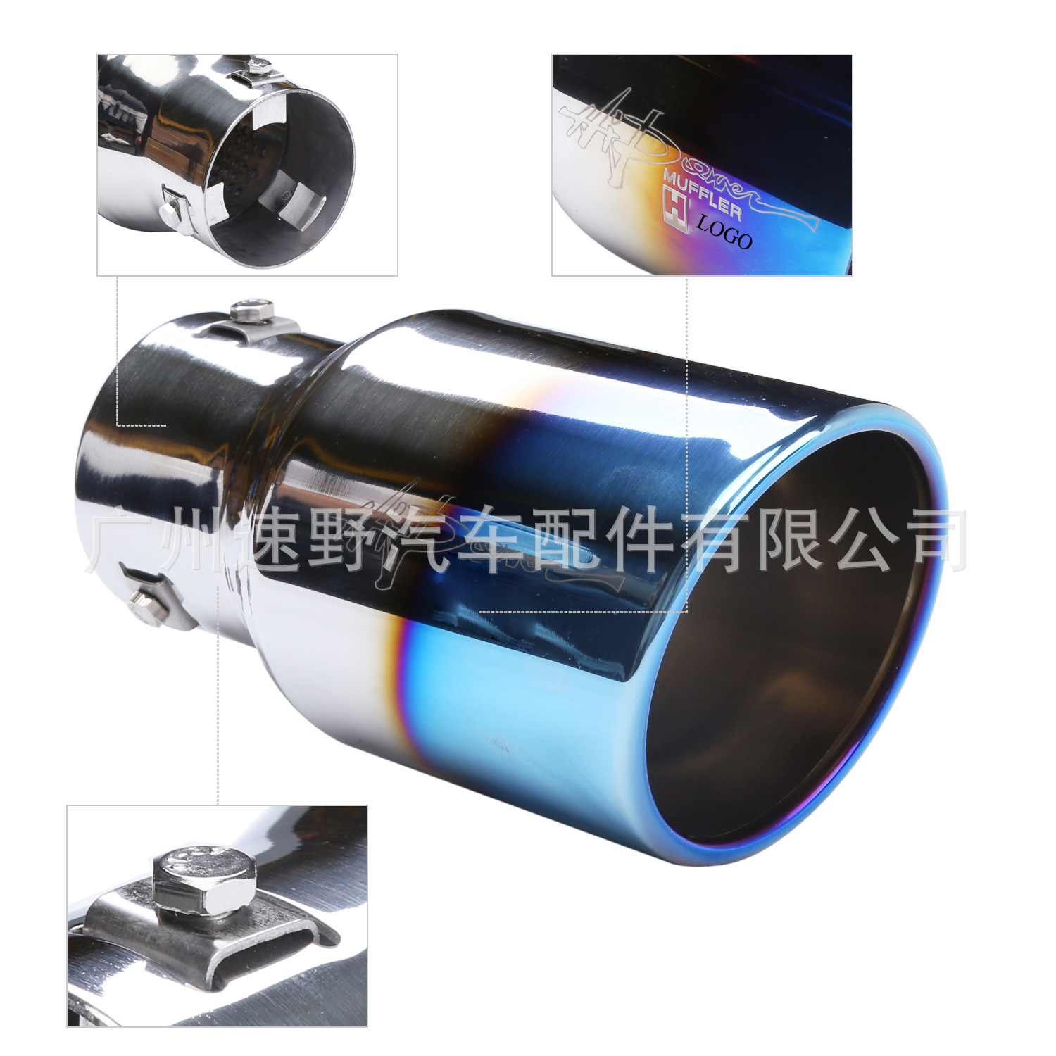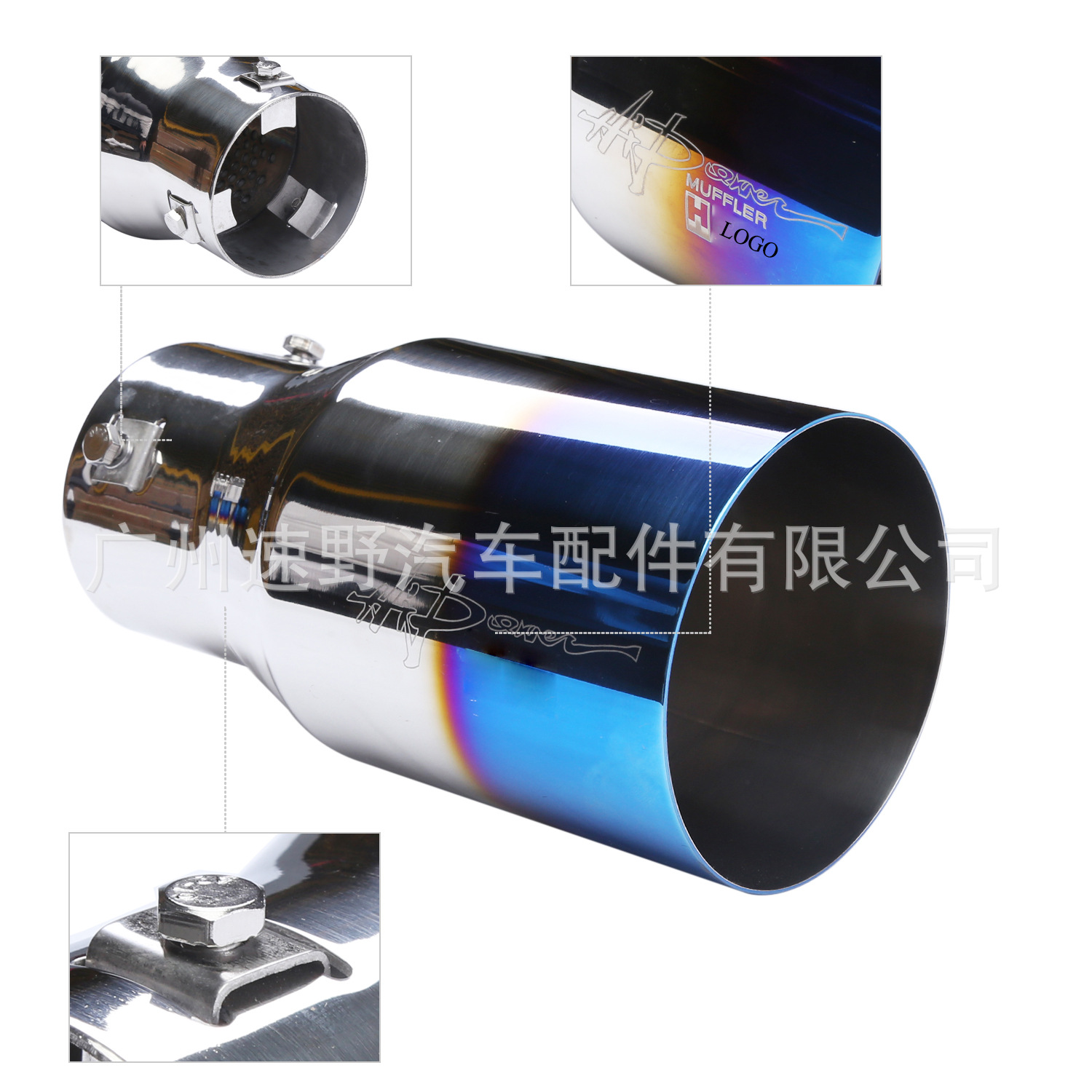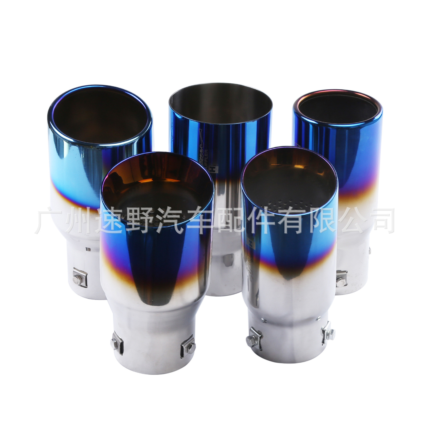 Adjustable Stainless Steel Exhaust Tip (76mm, Single/Dual Layer, Baked Blue) for Universal Car Exhaust Systems