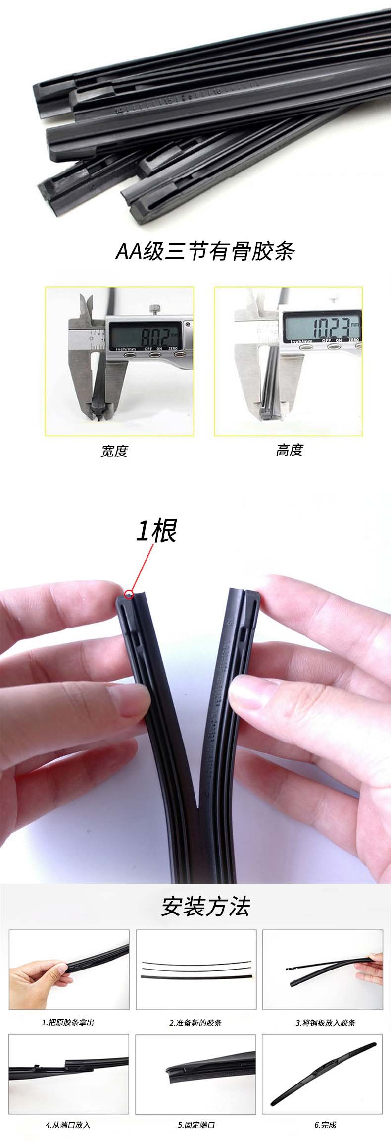 - Direct Fitment: A perfect replacement for three-section wiper blades (as pictured). Compatible with original wiper frame structures.