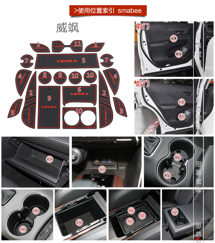 - Direct Fitment: Designed specifically for Toyota Venza models. Perfectly fits the center console cup holder, armrest, door slots, and other interior compartments, providing full coverage and protection.