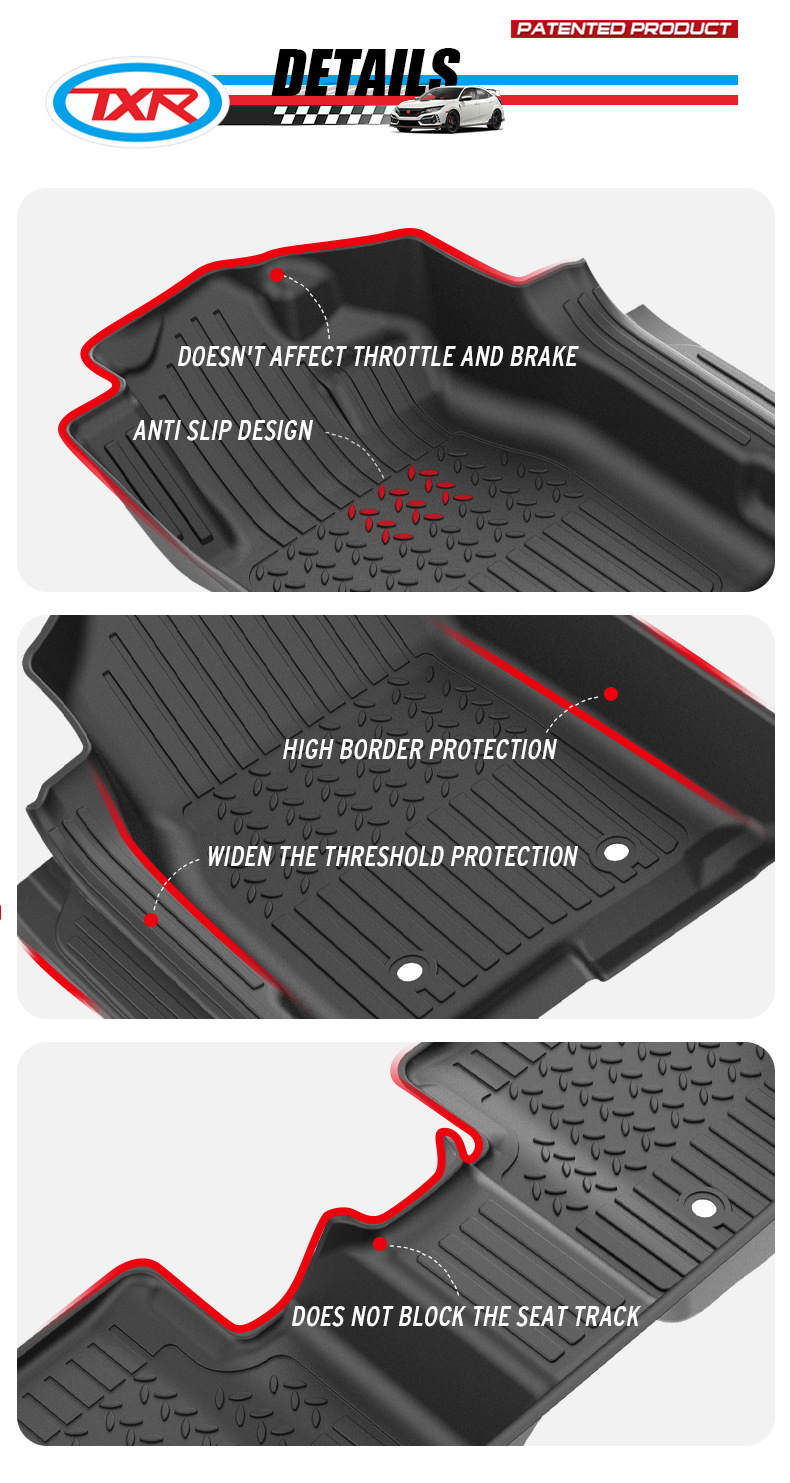 - Complete Package: Includes a 3-piece set of TPE floor mats (front driver, front passenger, and rear section), exactly as pictured. Please verify fitment details before purchasing.