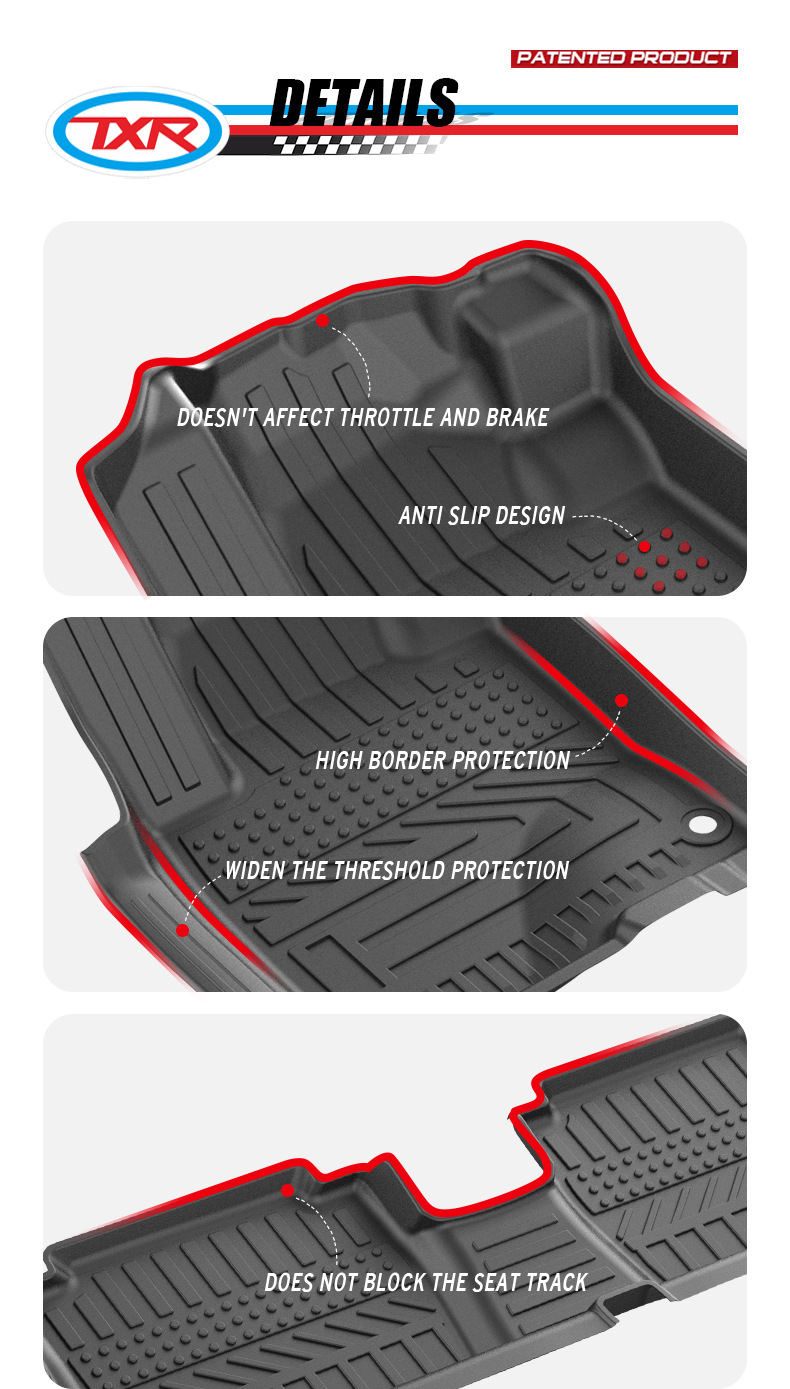 - Complete Package: Includes a 3-piece set of TPE floor mats for the front and rear passenger areas, exactly as pictured. Please verify fitment details before purchasing.