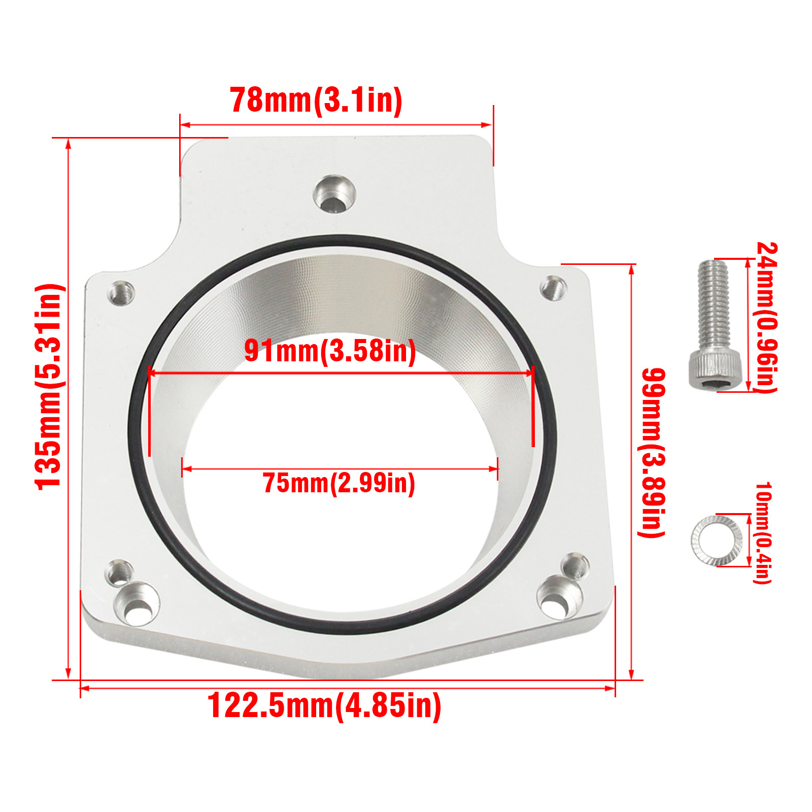 • This 92mm aluminum throttle body spacer and adapter plate is a crucial component for optimizing airflow to your engine, leading to improved horsepower, increased torque, and enhanced throttle response, making it an ideal choice for serious performance enthusiasts.