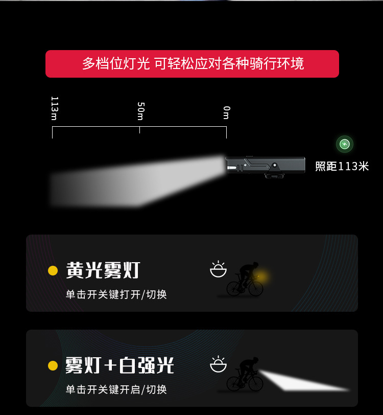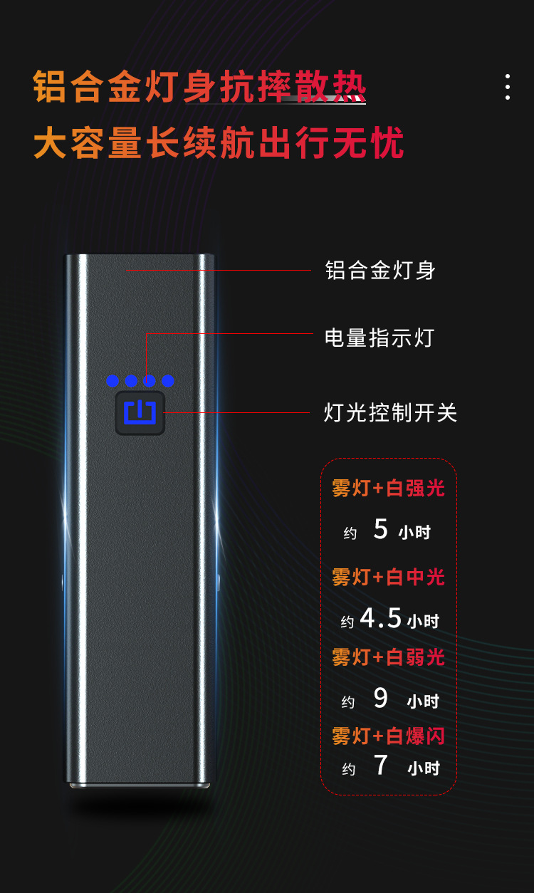 - Performance-Driven Design: Features a powerful main light and an integrated fog light, offering impressive brightness and a wide-angle, German-standard fan-shaped beam. TYPE-C rechargeable with 5-9 hours runtime and a four-segment power indicator.