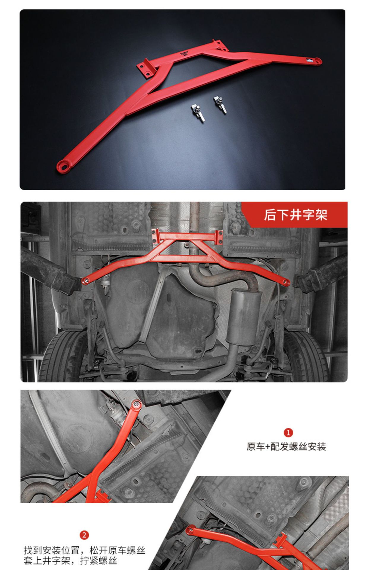 - Easy Bolt-On Installation: Engineered for a direct fit, these chassis braces allow for straightforward, non-invasive installation. No modifications or special tools are required, making it an ideal upgrade for DIY enthusiasts.