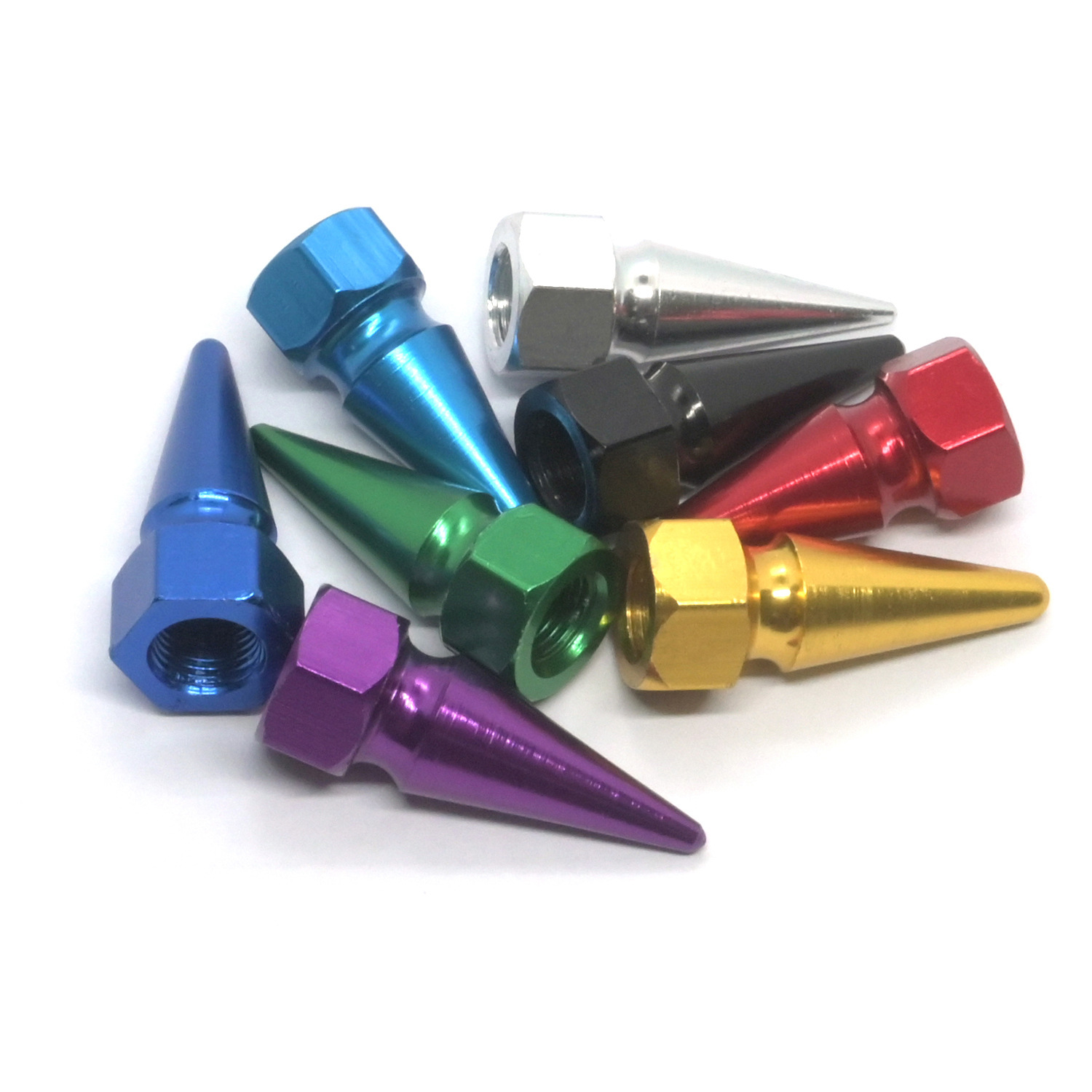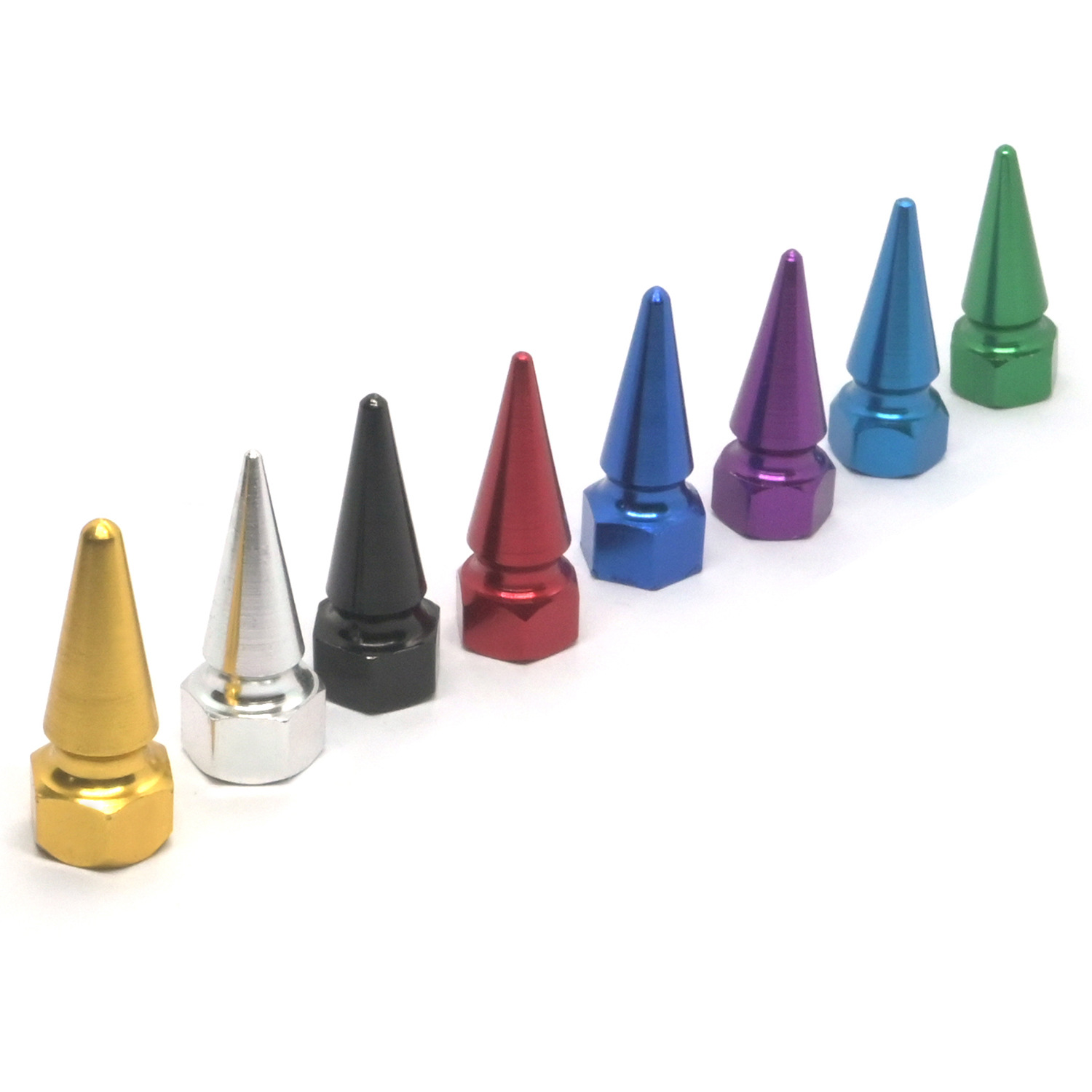 Aluminum Alloy Cone-Shaped Valve Stems Dust Caps for Universal Car Multi-Color Screw-on Style