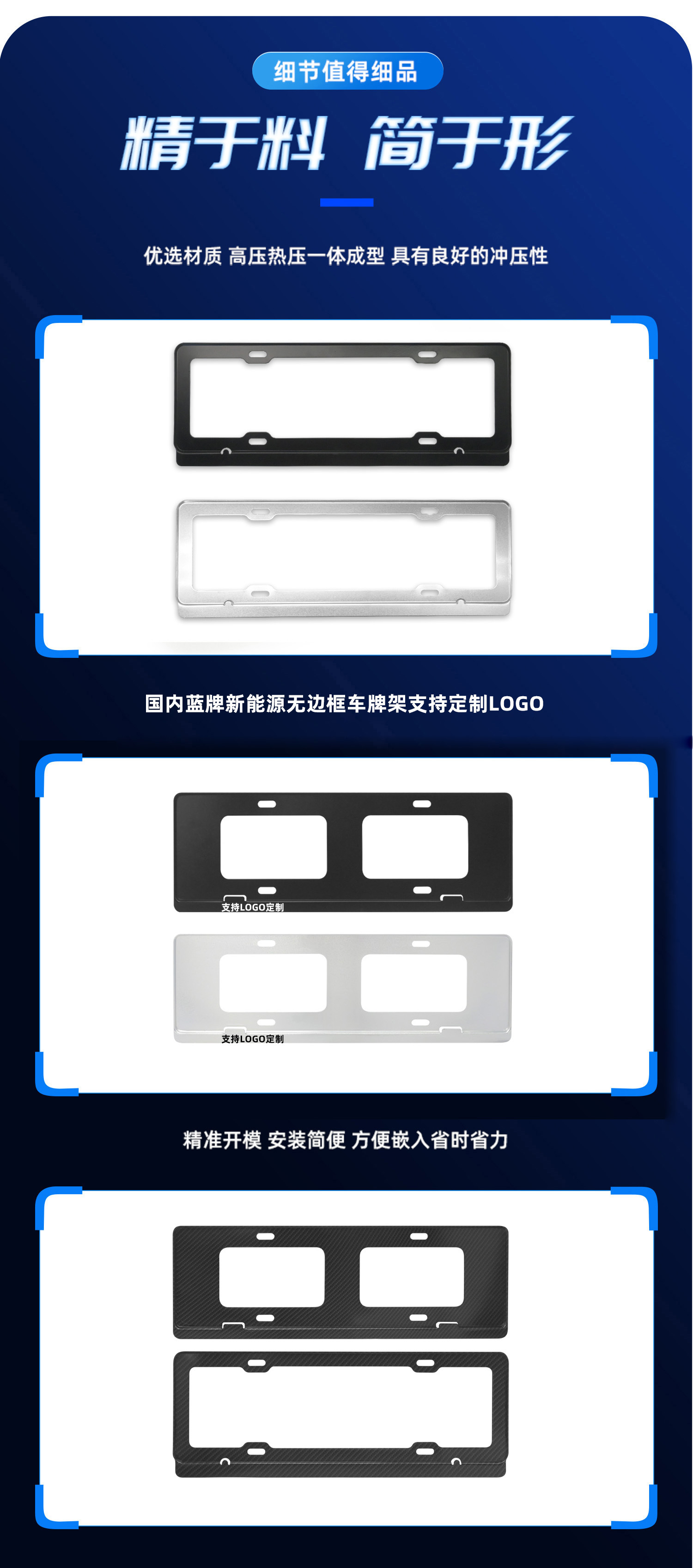 Aluminum Alloy Electric Vehicle License Plate Frame Borderless for Chinese New Energy Vehicles