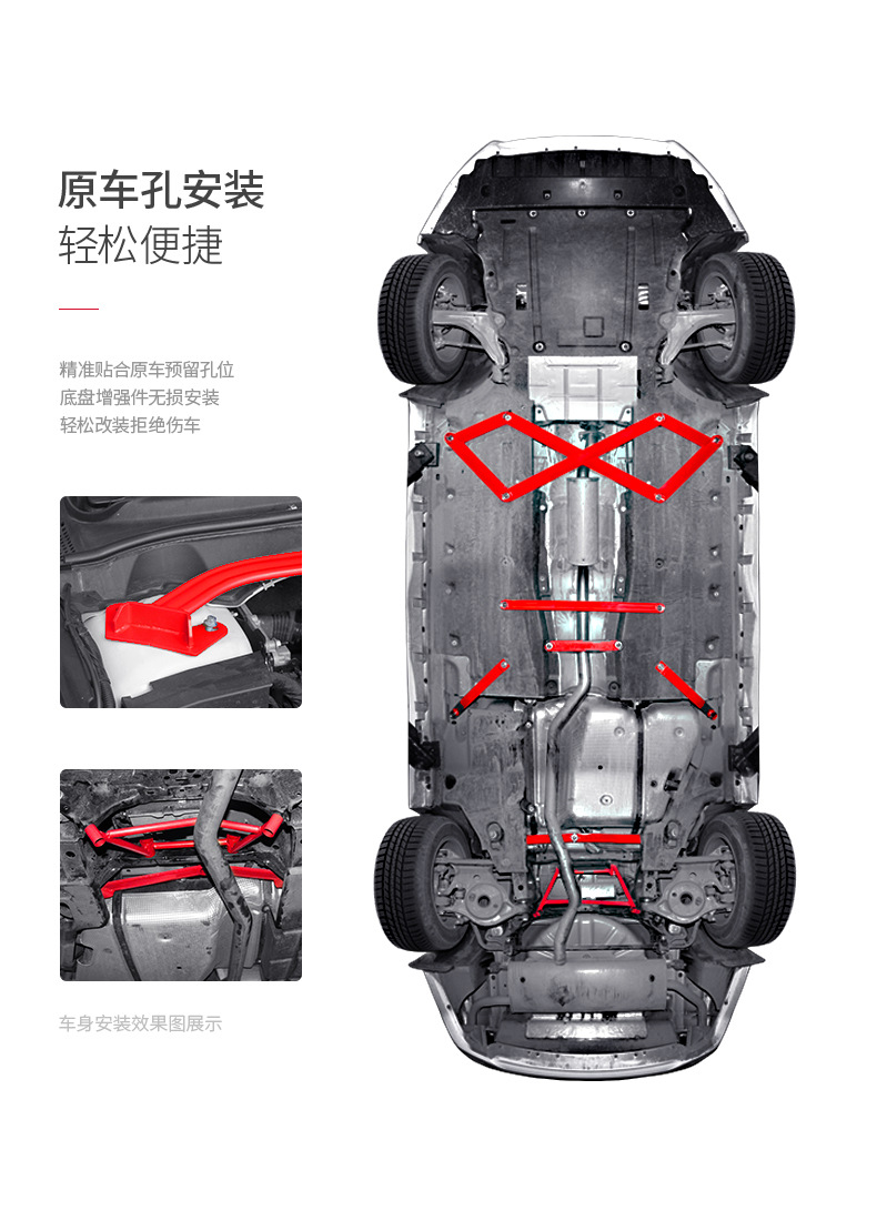 - Enhanced Driving Stability: Significantly enhances cornering stability and reduces chassis flex, providing a more controlled and confident driving experience, especially during aggressive maneuvers.