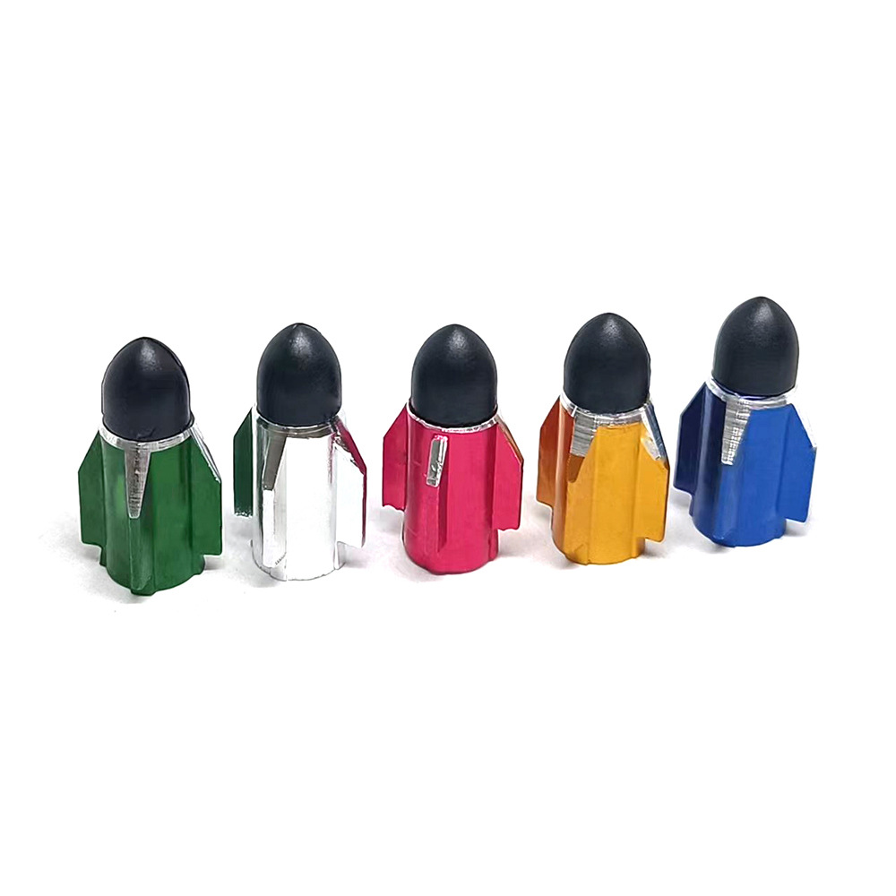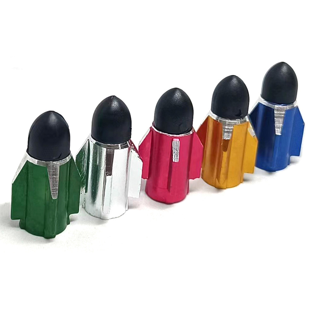 - Distinctive Rocket Head Design: Features a unique and stylish rocket head shape in vibrant colors (gold, silver, red, blue, green) to add a personalized and eye-catching touch to your wheels.