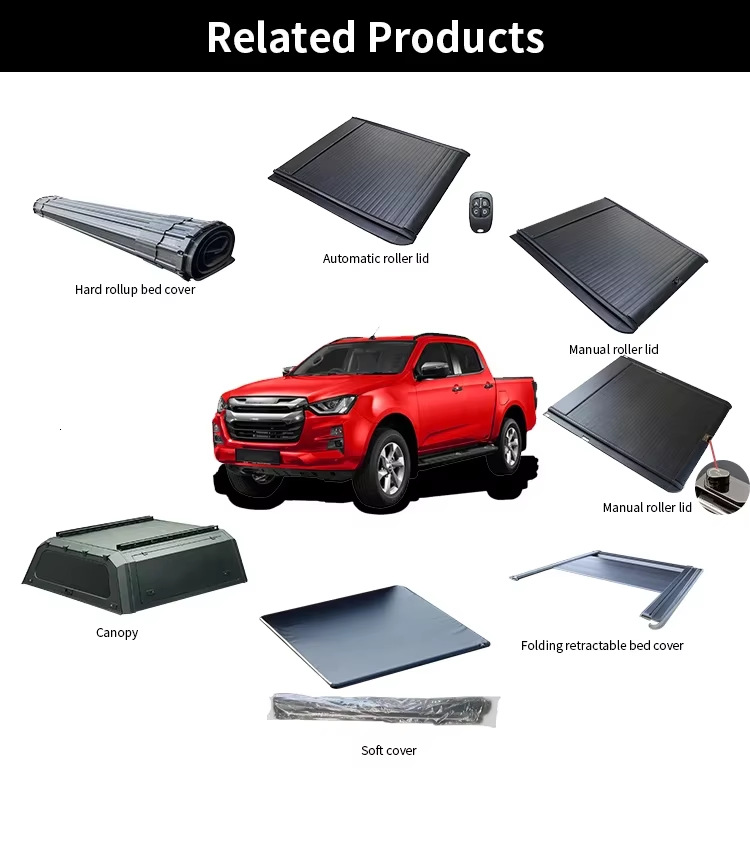 Aluminum Retractable Roller Lid Tonneau Cover for Ford Ranger T6 T7 T8 T9 Wildtrak Raptor Maverick, Hilux Vigo Revo Rocco, Nissan D40 NP300 Titan, Isuzu D-MAX, Mitsubishi Triton L200