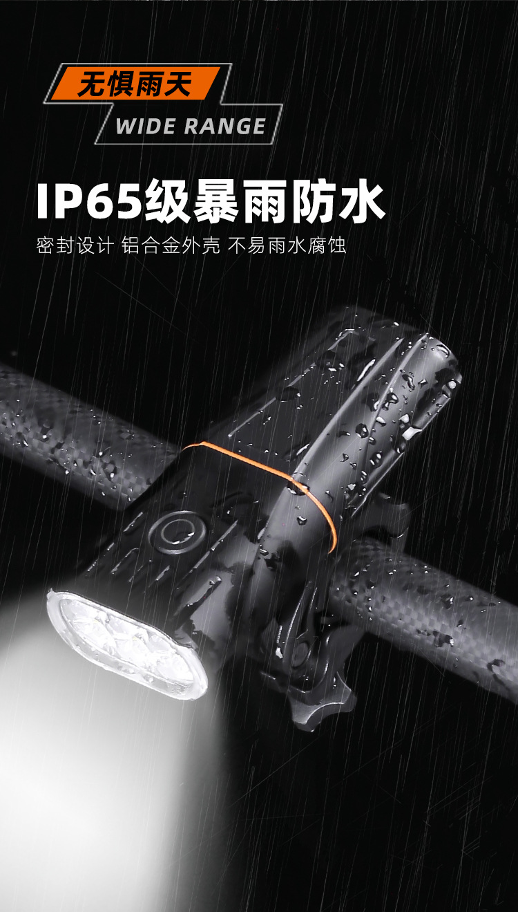 - Heavy-Duty Build: Crafted from durable aluminum alloy, this bike light features a robust and splash-proof design, as shown in the image with water droplets, ensuring reliability in various weather conditions.