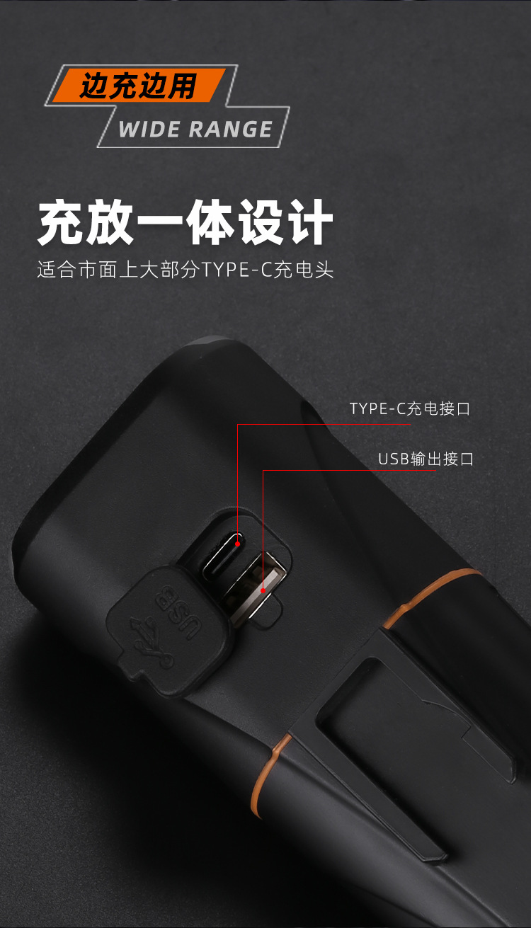 - Performance-Driven Design: Boasts 1600 lumens of ultra-bright illumination for enhanced visibility and long-distance projection. Includes Type-C charging port and can function as a portable power bank, as highlighted in the picture.