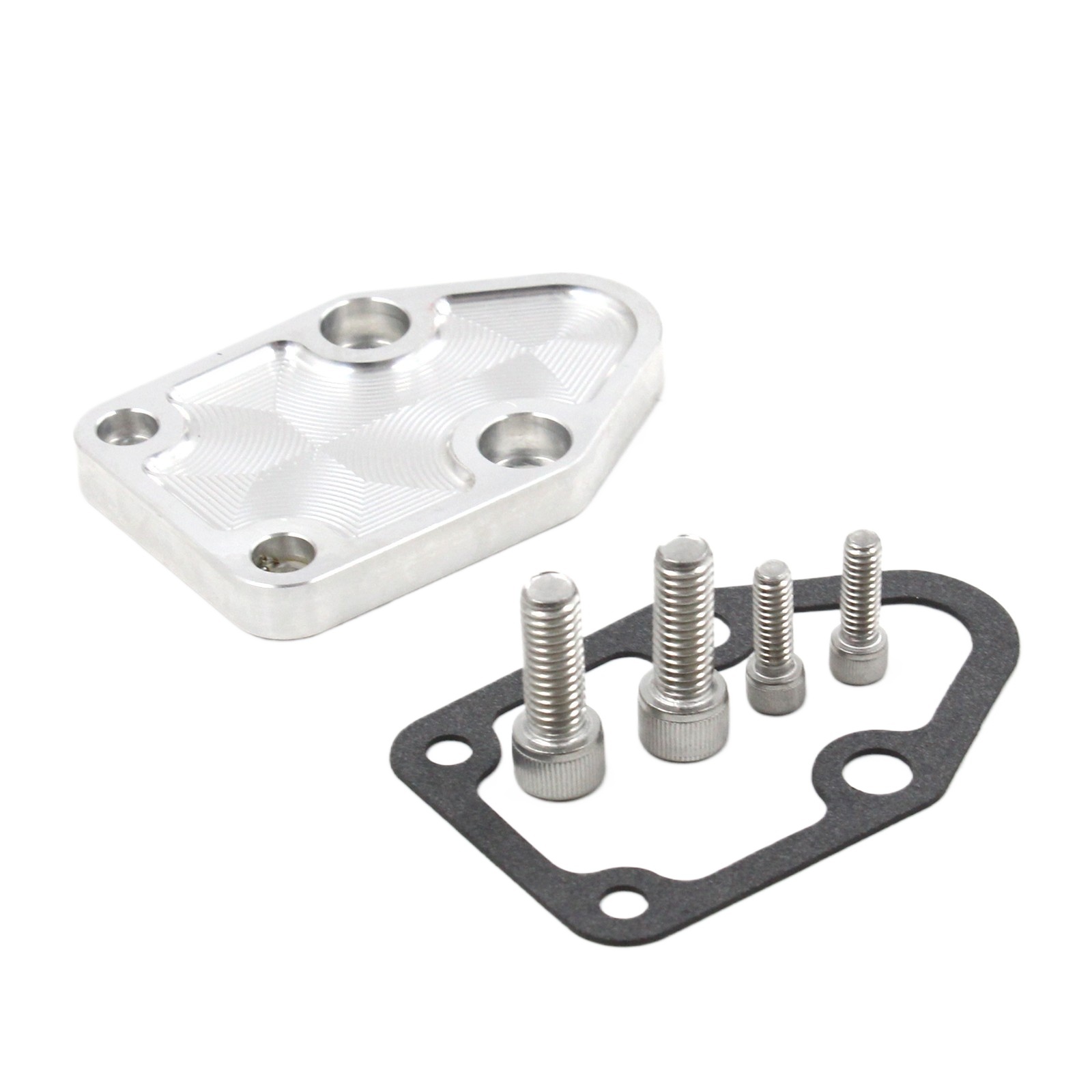 - Performance-Driven Design: Designed for securely blocking off the mechanical fuel pump mounting boss when converting to an electric fuel pump. Includes an anti-leak gasket and essential mounting bolts.