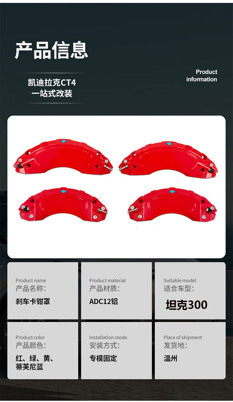 - Package Contents: Includes a complete set of 4 brake caliper covers for full vehicle coverage, adding a sporty and customized touch to your Tank 300 or Tank 500.