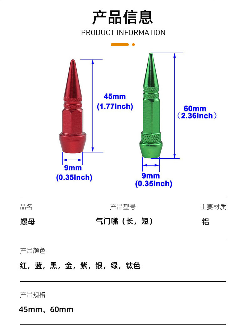 Aluminum Bullet Valve Stem Caps for Bicycle, Motorcycle, Car, and Universal Vehicles