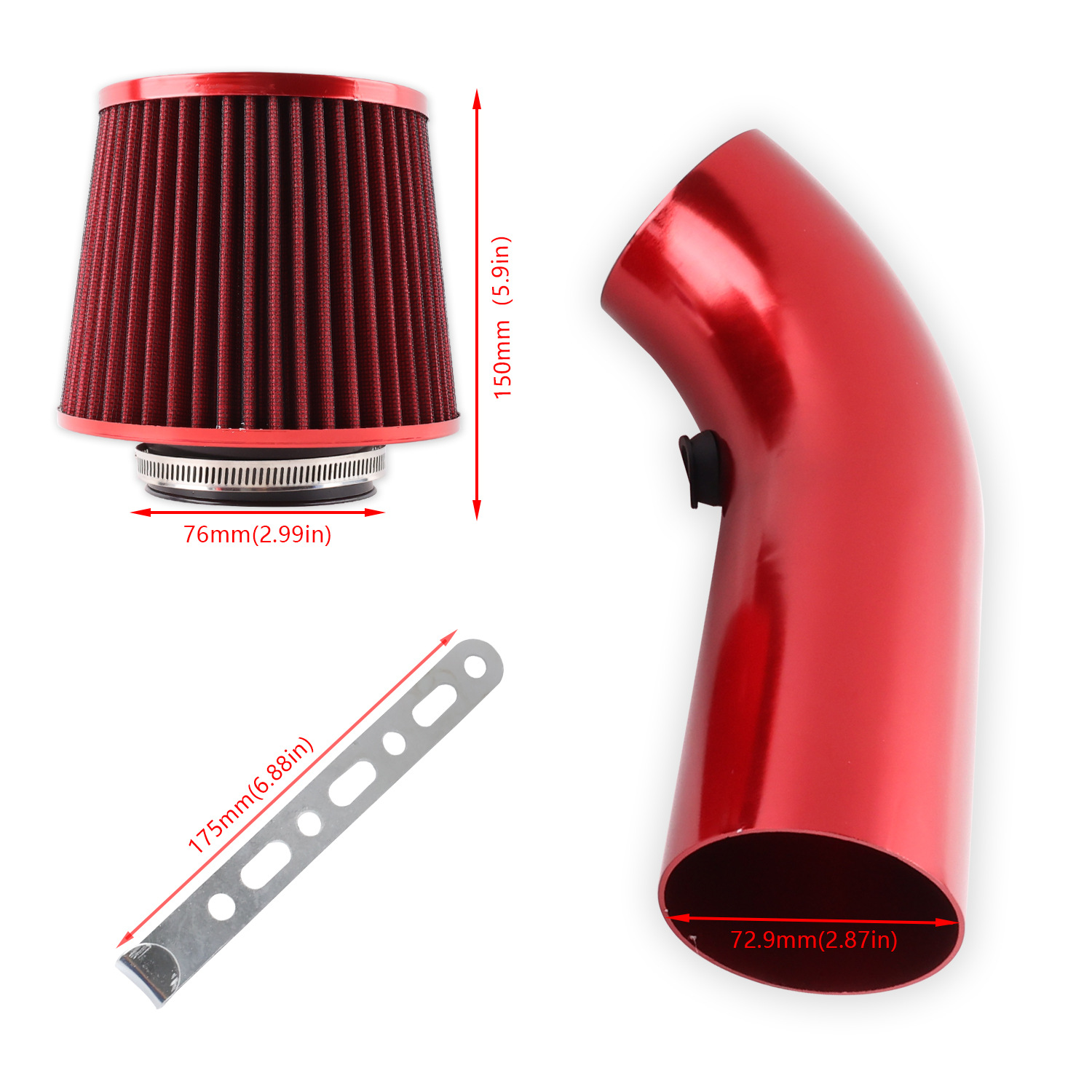Aluminum Cold Air Intake Pipe Kit with High-Flow Mushroom Head Air Filter (76mm) for Universal Vehicle Application