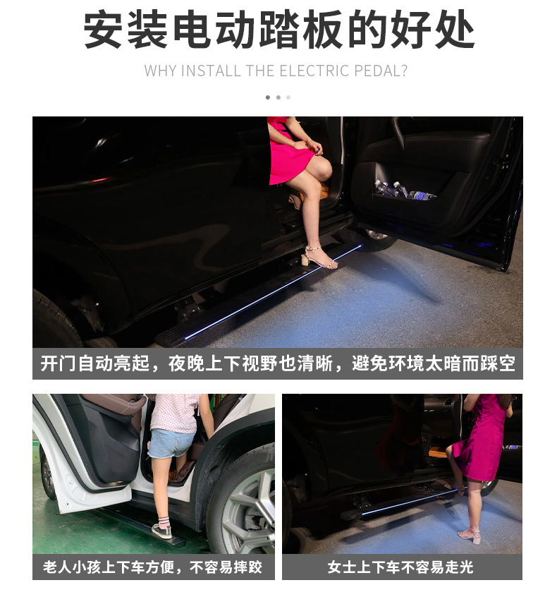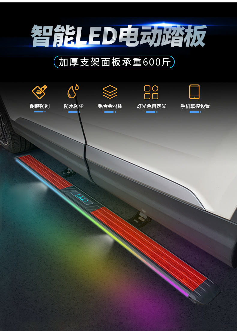 - Heavy-Duty Build: Crafted from high-strength aluminum with a durable black finish, these electric running boards are designed to withstand heavy use and various weather conditions.