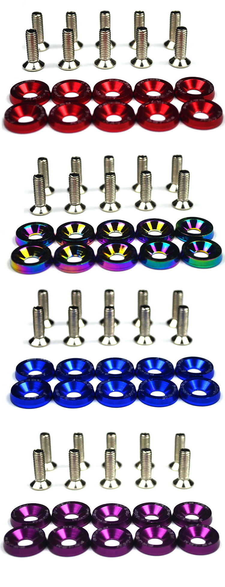 - Package Contents & Versatility: Includes a set of M6 aluminum washer bolts, ideal for various automotive customization projects, offering both functional security and visual appeal.