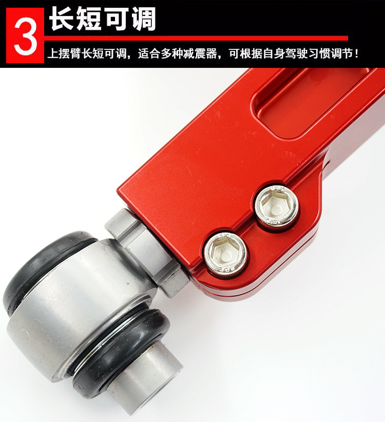 - Adjustable Design: Features an adjustable upper control arm design, enabling precise alignment adjustments to optimize camber and caster angles for enhanced tire wear and stability.
