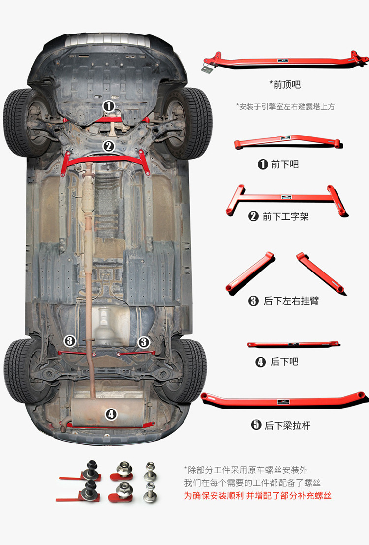 - Enhanced Driving Performance: Reduces chassis flex, improves steering response, and offers better handling during cornering, providing a more stable and controlled driving experience.