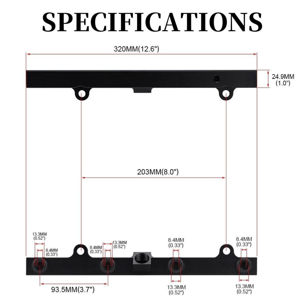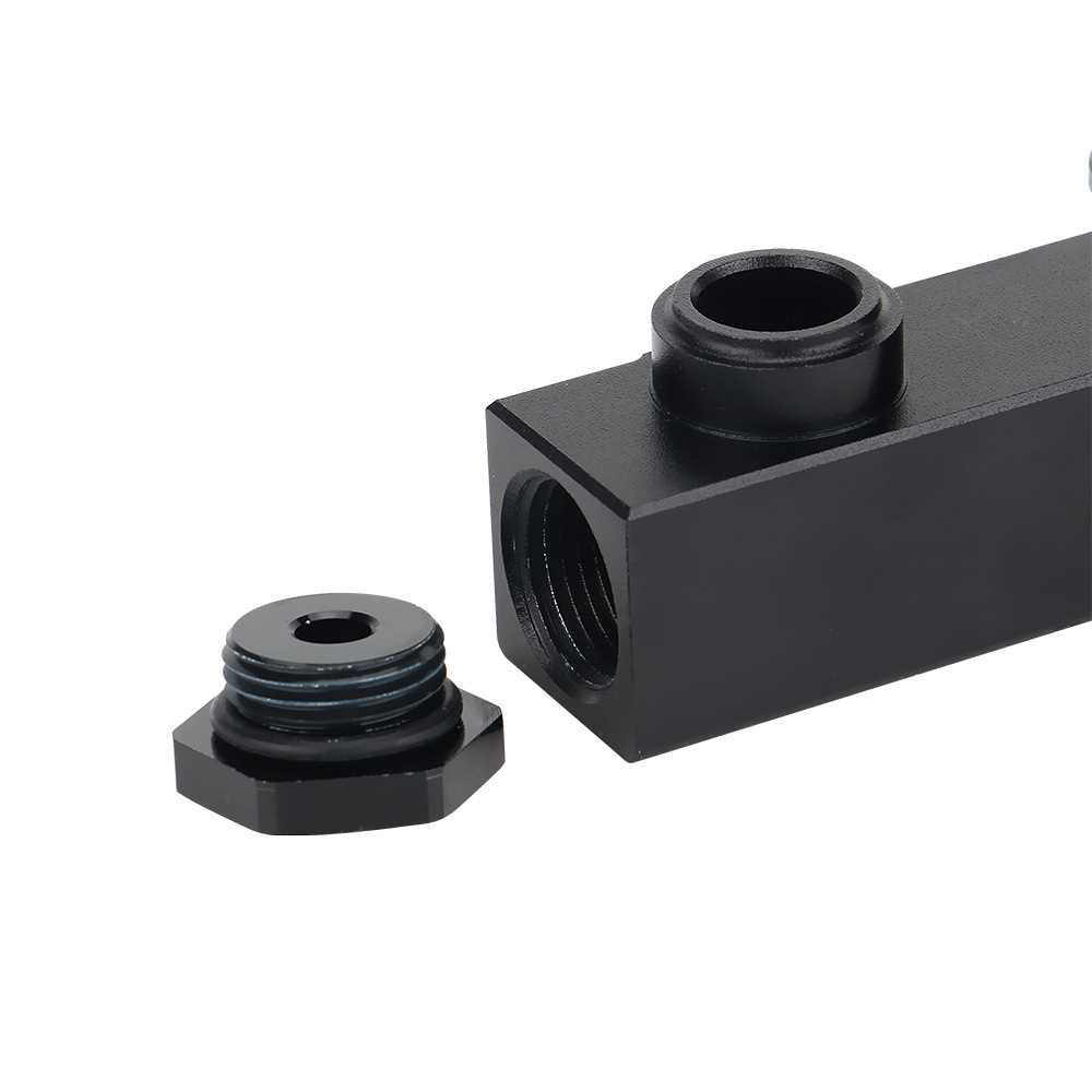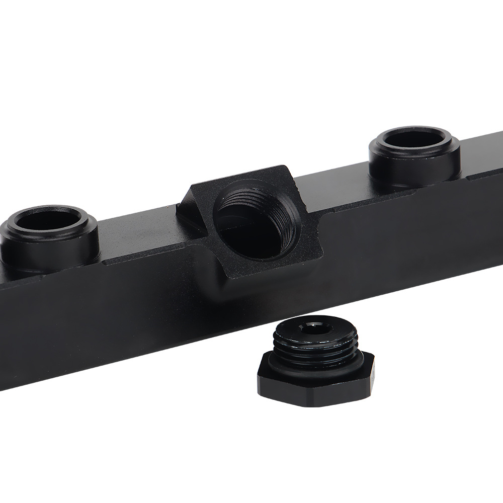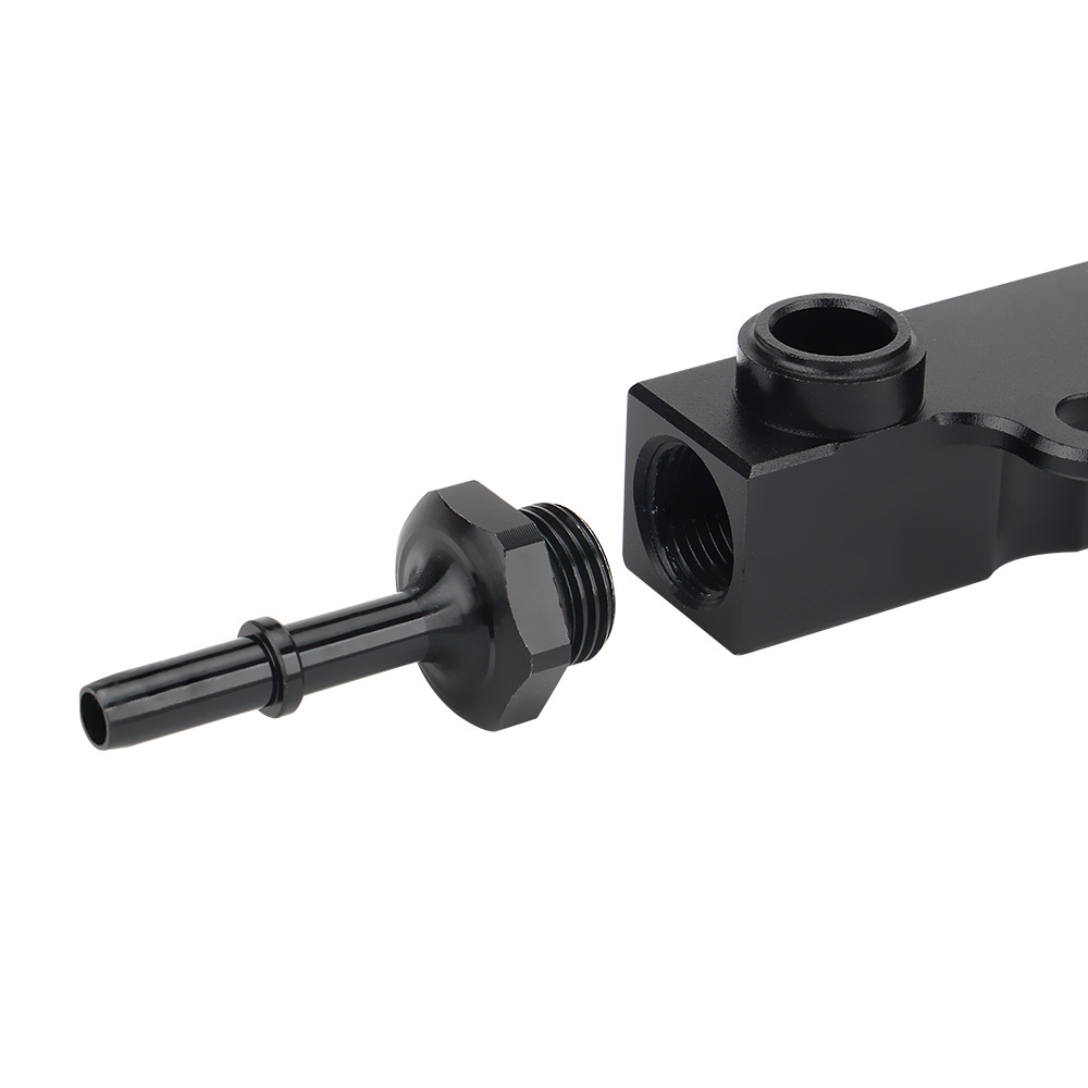 • Crafted from high-grade 6061-T6 billet aluminum, this fuel rail kit is designed for exceptional durability and performance. It features a hard-anodized black finish, making it resistant to corrosion and wear while enhancing under-hood aesthetics.