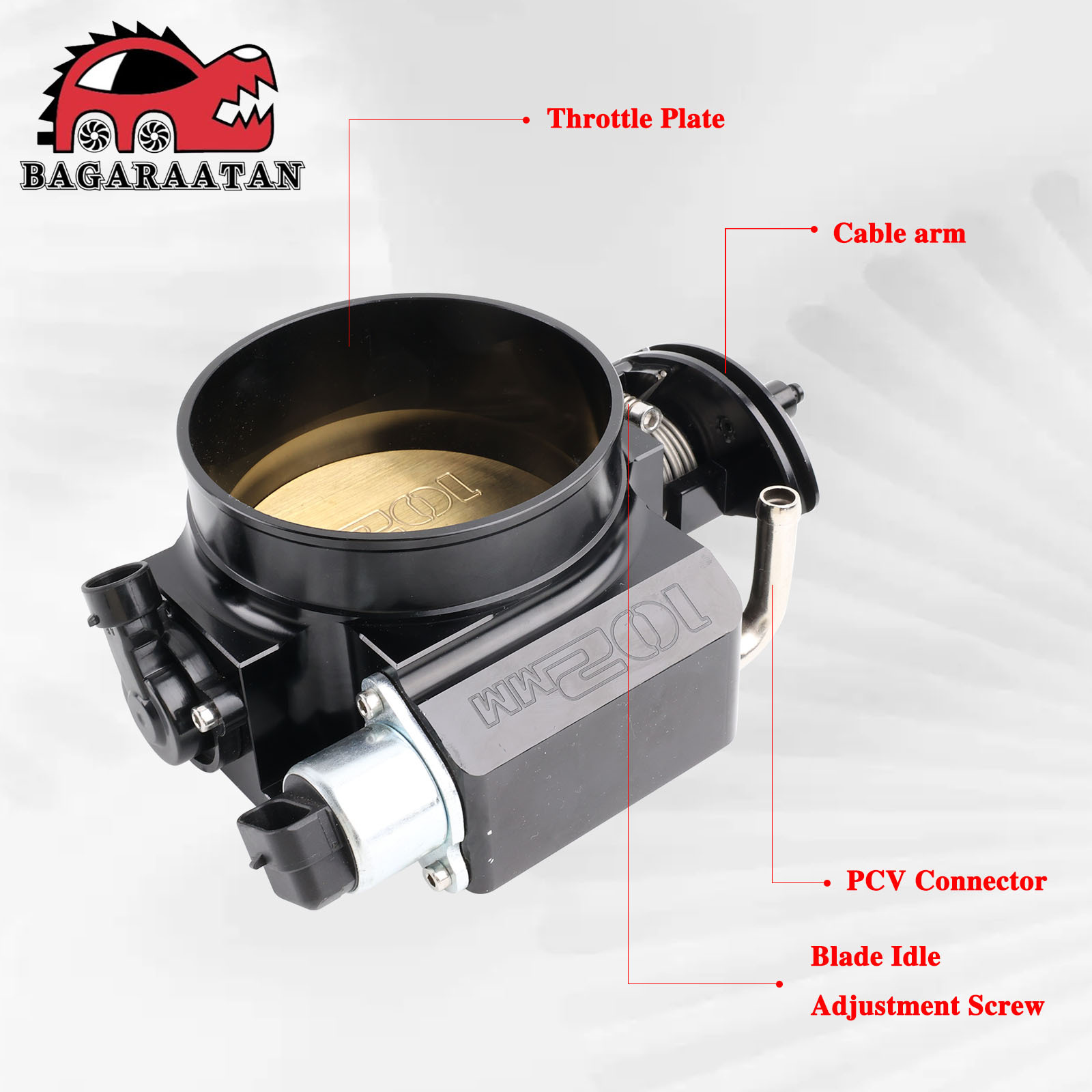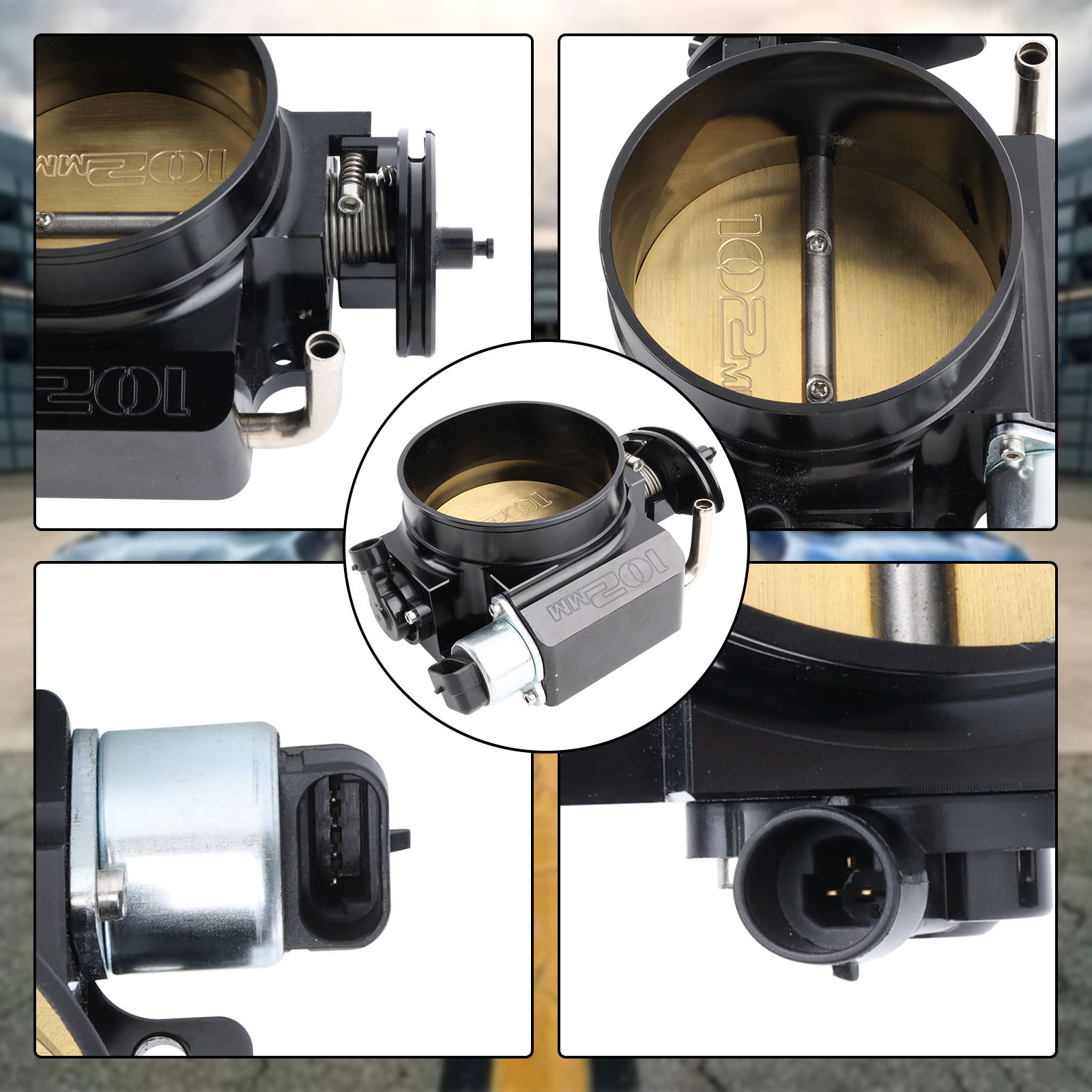 • Constructed from high-quality T6061 billet aluminum, this 102MM throttle body offers superior durability and heat dissipation compared to cast alternatives. This robust material is engineered to withstand high performance demands, resisting warping and wear for long-lasting reliability and increased airflow.