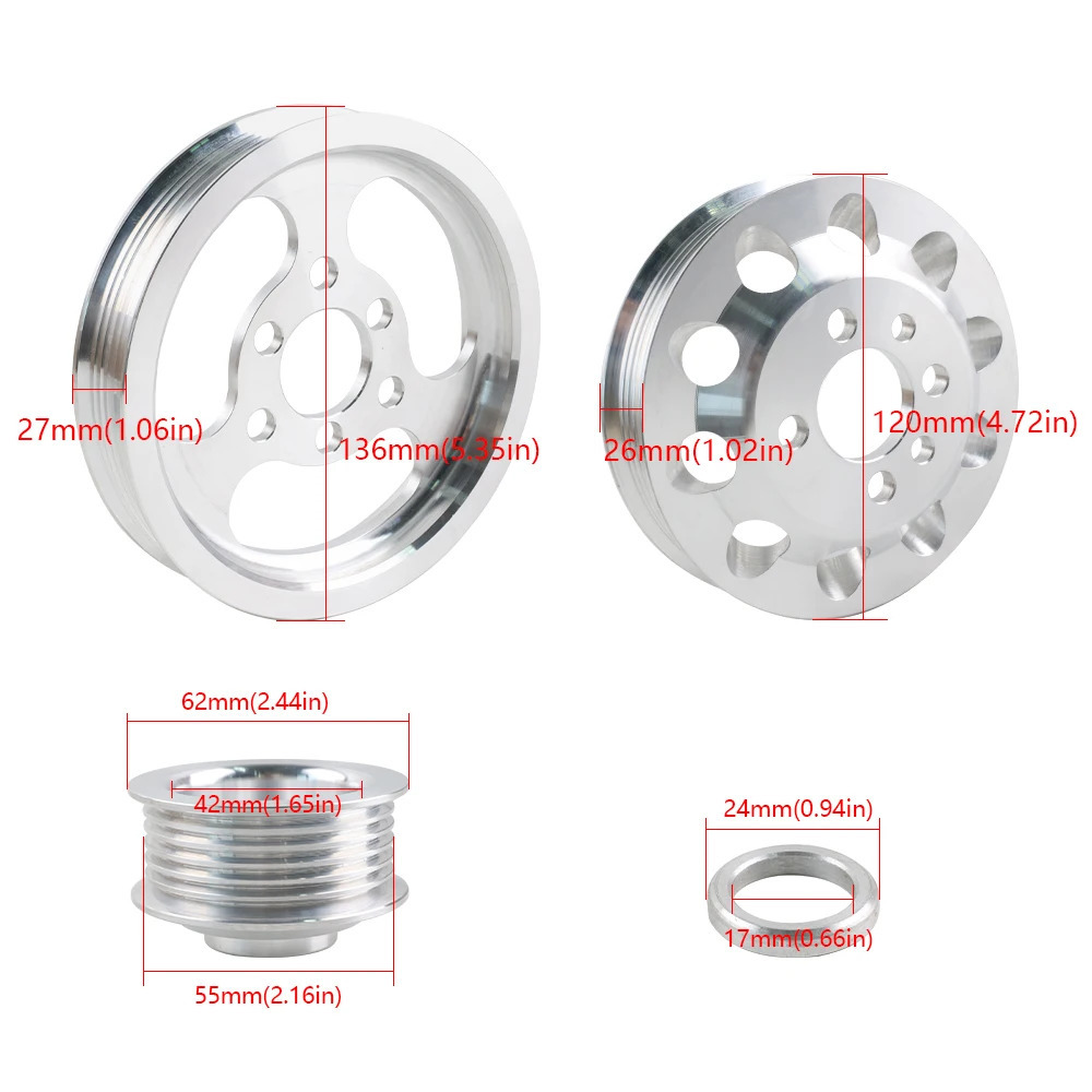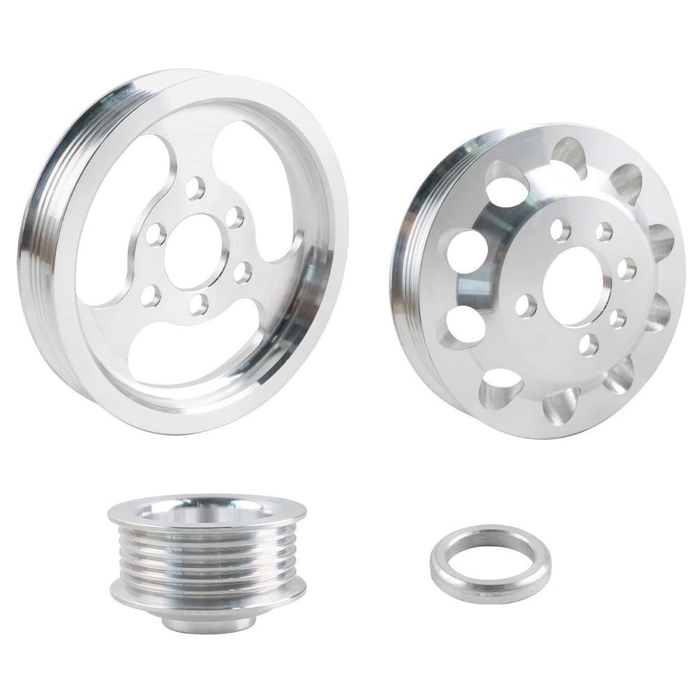 • Complete Performance Upgrade: This package includes 1 x Lightweight Aluminum Crankshaft Pulley, offering a cost-effective solution to boost your vehicle’s performance and responsiveness. It’s an essential upgrade for enthusiasts seeking to unleash their engine’s full potential.
