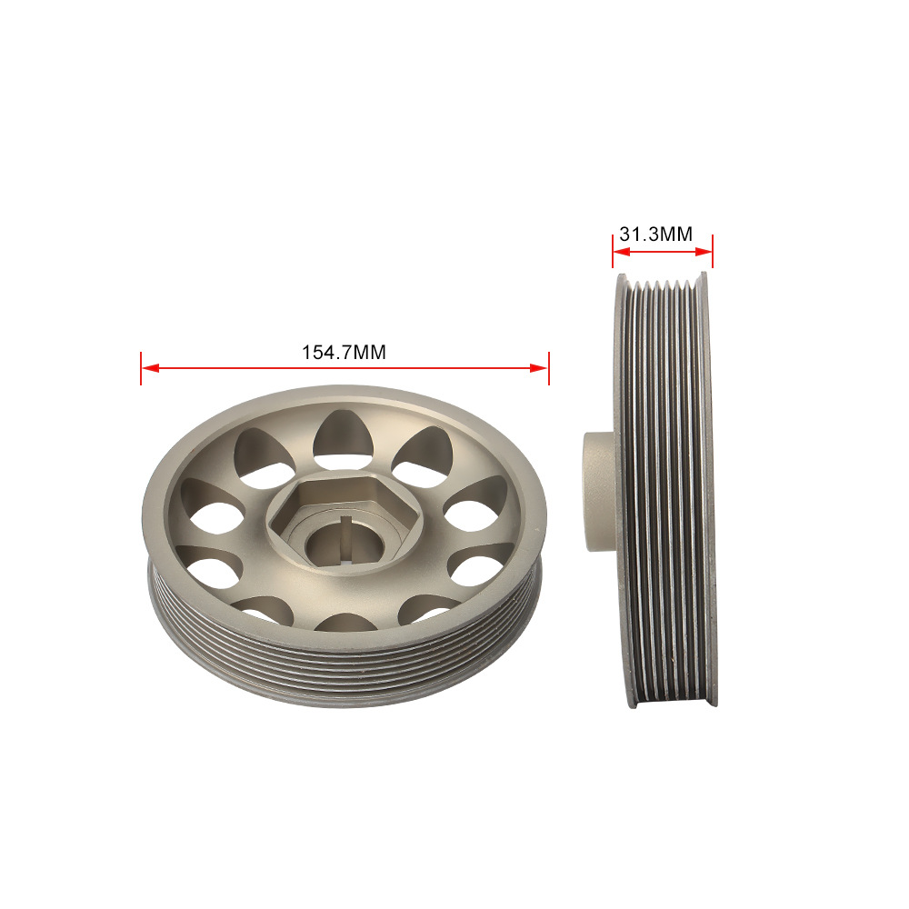 • Sleek Anodized Finish for Enhanced Aesthetics: Featuring a sleek anodized surface treatment, this crankshaft pulley not only provides superior protection against wear and tear but also adds a touch of style to your engine bay.