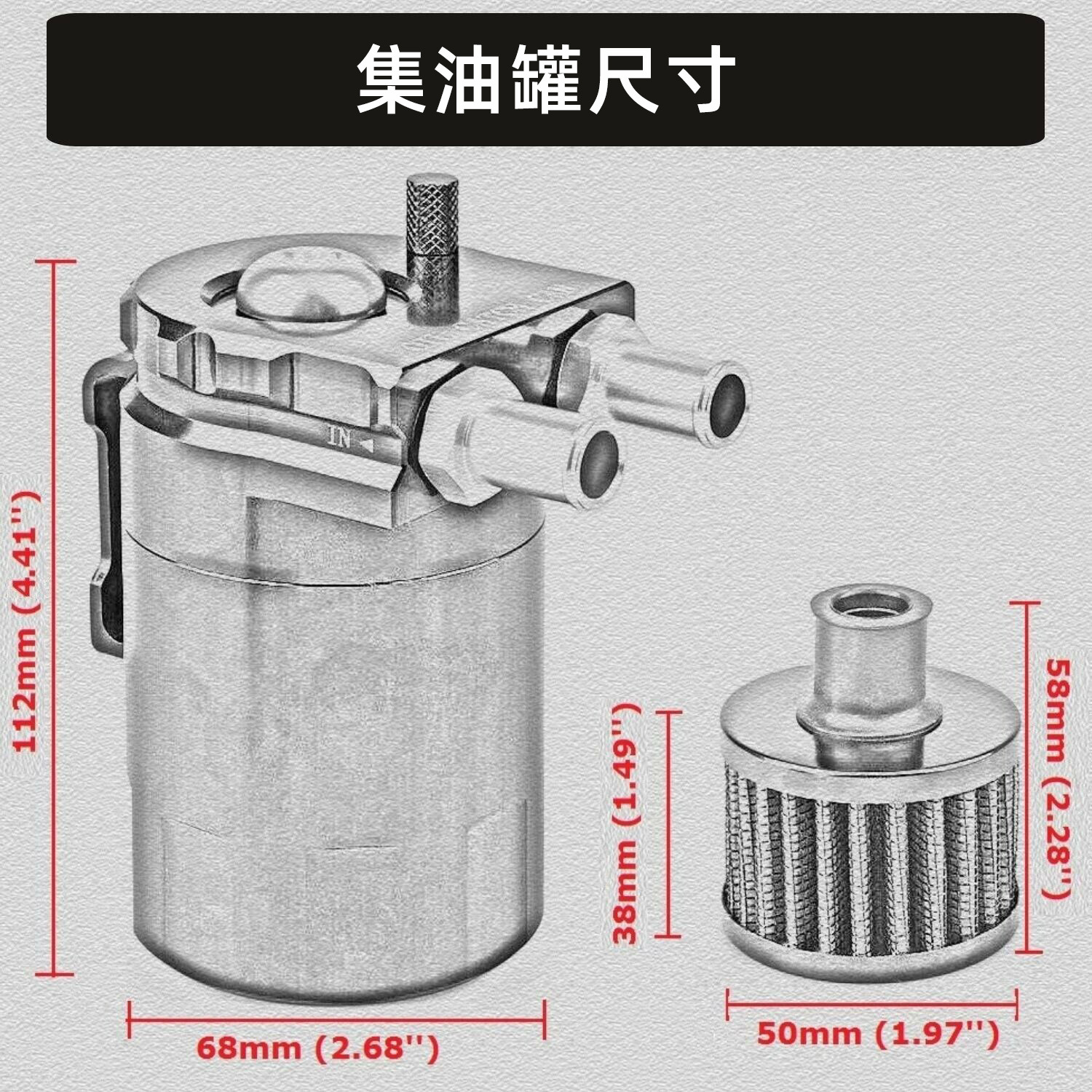 • Sleek Design & Performance Enhancement: With its polished finish and functional design, this oil catch can not only adds a touch of performance aesthetic to your engine bay but also helps maintain optimal engine efficiency.